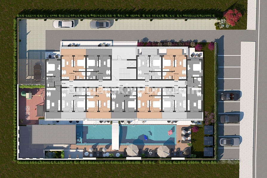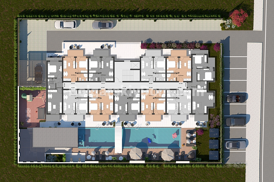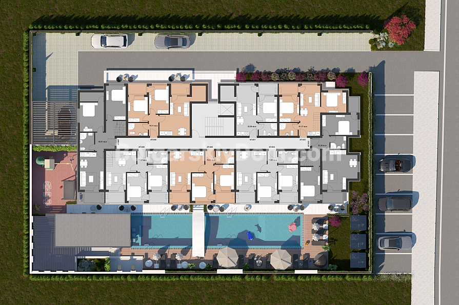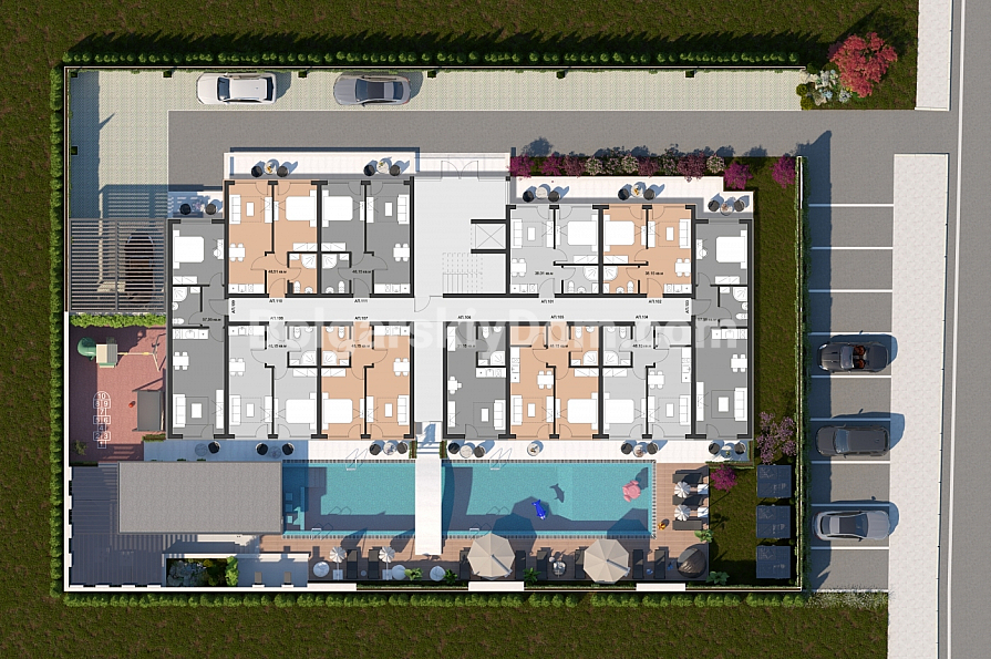 Комплекс розташований у тихому та зручному районі Сонячного Берега — лише 5–10 хвилин пішки до набережної, магазинів, ресторанів, банків, аптеки та зупинок громадського транспорту.