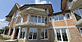 Декоративні елементи з натурального каменю (травертину), кованого заліза, арки, колонади та стильне фасадне освітлення.