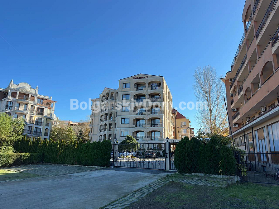 Сезони 3 - невеликий затишний і зелений комплекс в Сонячному березі, створений для тих, хто цінує спокій і комфорт. Доглянута закрита територія з басейном, барбекю-зоною і внутрішньою парковкою. Влітку тут працює приємний відкритий ресторанчик. У шестиповерховій будівлі безперервно функціонує ліфт. Родзинка комплексу - власна лазня, в якій ви можете відпочити і розслабитися в будь-який час року. Тихий, спокійний район в стороні від галасливої курортного життя, але при цьому з досить розвиненою інфраструктурою околиць. Поруч - відмінний рибний магазин зі свіжими морепродуктами, буквально в 200 метрах через догогу - великий цілорічний супермаркет Лідл. До моря з піщаним пляжем 800 метрів.