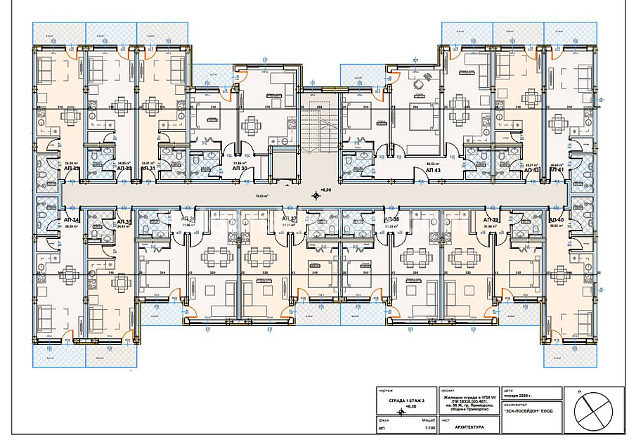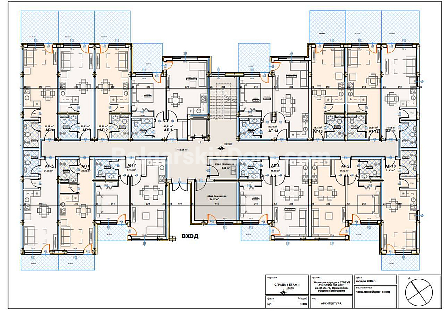Спеціальна пропозиція! Квартири від забудовника в новому комплексі Посейдон Резиденс у Приморсько. Проєкт складається з чотирьох будівель — однокімнатні, двокімнатні та трикімнатні апартаменти. На першому поверсі передбачені квартири з власним прилеглим двориком. Комплекс розташований у тихій частині міста: лише 300 метрів до пляжу Південного Приморсько та 100 метрів до головної торгової вулиці з магазинами, кафе та всім необхідним. Початок будівництва — навесні 2026 року, перші будівлі №1 і №4 зводяться паралельно.
