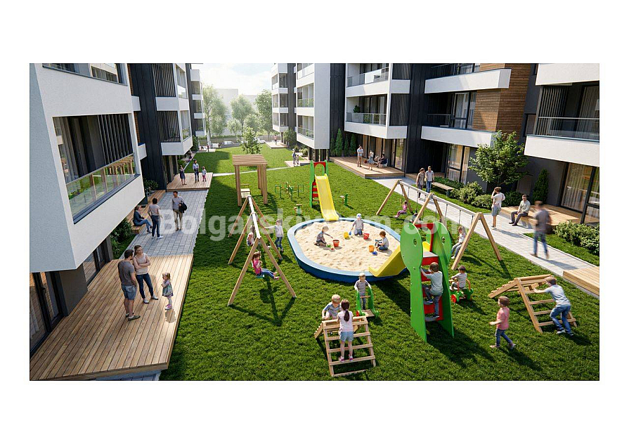 Квартири здаються в стані до ТАПА: оштукатурені стіни та стелі, стяжка на підлозі, виконані електромонтажні та сантехнічні роботи за проєктом, встановлені вікна ПВХ, вхідні двері, система кондиціонування. Загальні частини будівлі повністю готові згідно з проєктом. Кожна квартира має індивідуальне водо- та електропостачання — це дозволяє завершити оздоблення під ключ за окремим договором за 250 євро за кв.м. (фарбування, підлогове покриття, двері, сантехніка, освітлення тощо). Гаражі, підземні та наземні паркомісця — опціонально. План оплати в розстрочку: 20% при підписанні попереднього договору, потім по 20% на ключових етапах (+6 міс., +12 міс., Акт 14), 10% на Акт 15 і 10% на Акт 16. Завдаток 5% при бронюванні квартири — переказом із договором про гарантований завдаток. Компанія Болгарський Дім надасть плани, візуалізації, точні ціни та умови — напишіть або зателефонуйте, щоб обрати квартиру та зафіксувати розстрочку!