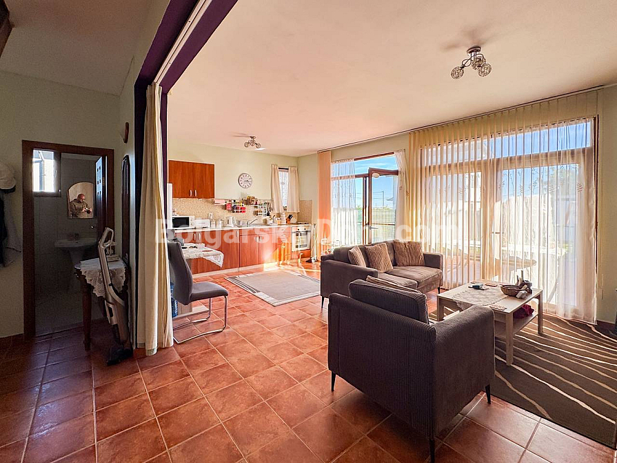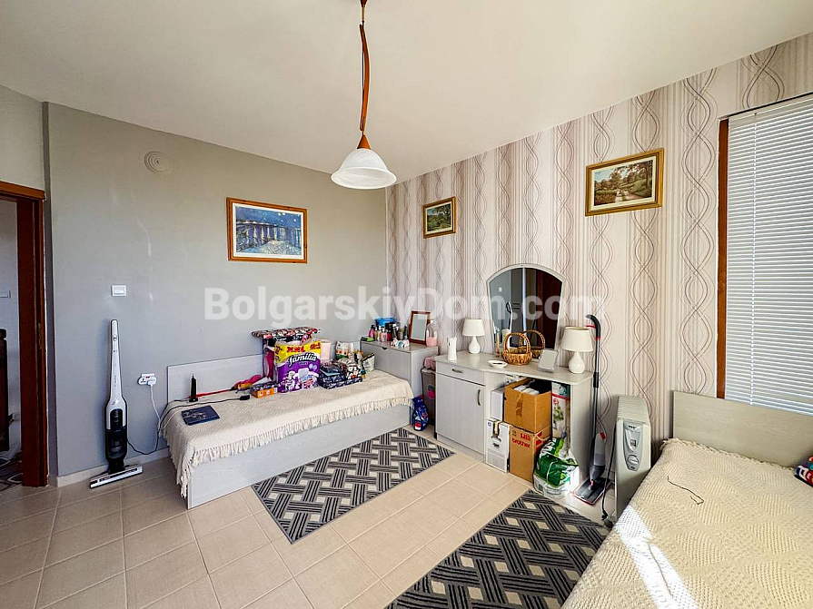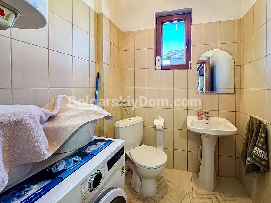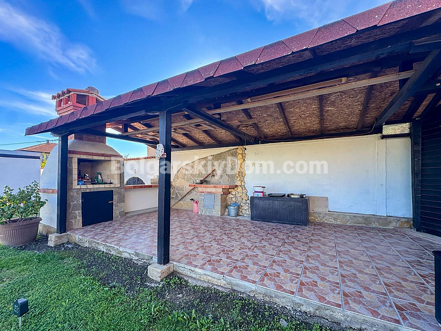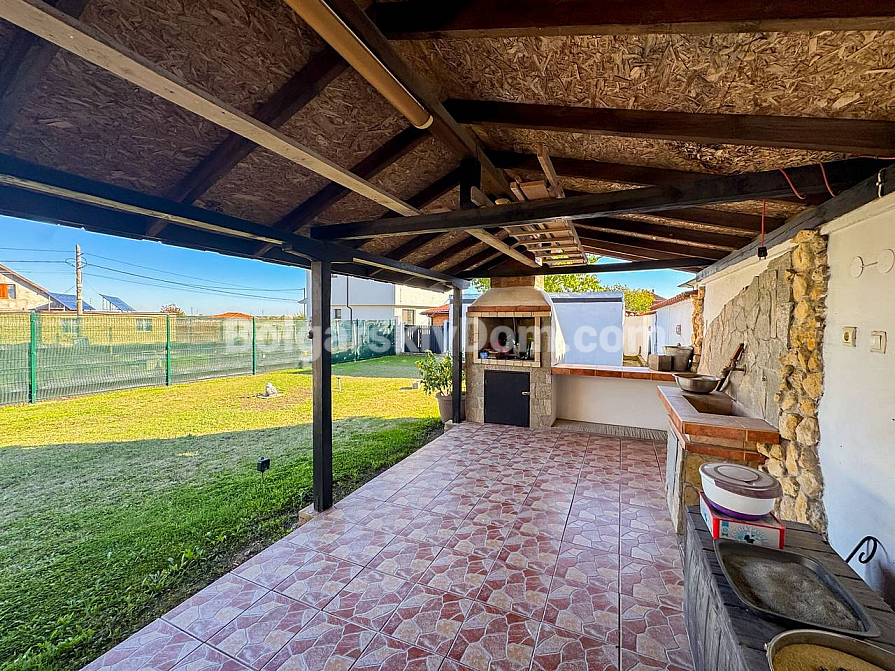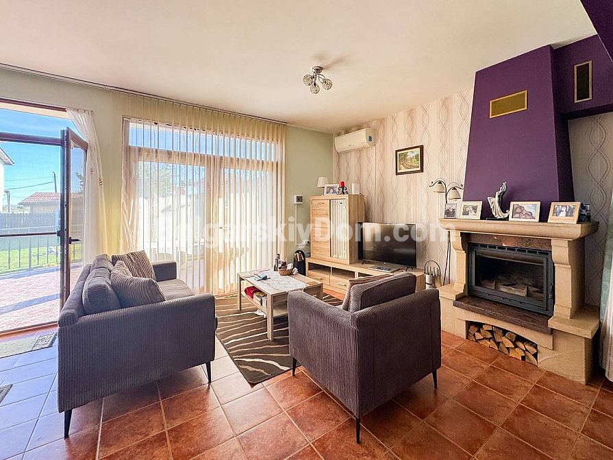 Пропонуємо двоповерховий будинок із сучасною архітектурою та власною зоною барбекю в селищі Каменар, передмісті Поморія — ідеальний варіант для комфортного життя без курортної метушні! Будинок площею 110 кв.м. розташований просто в центрі селища та перебуває в чудовому стані — повністю готовий до заселення. Усередині вас чекають два повноцінні санвузли та вже встановлені меблі. Особливий затишок створює приватний дворик з облаштованою терасою для барбекю — ваше особисте місце для відпочинку на свіжому повітрі. І ще одна перевага — у будинку немає такси обслуговування, оскільки він належить до житлового фонду.