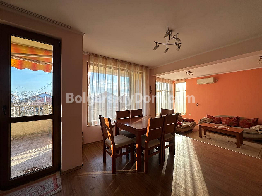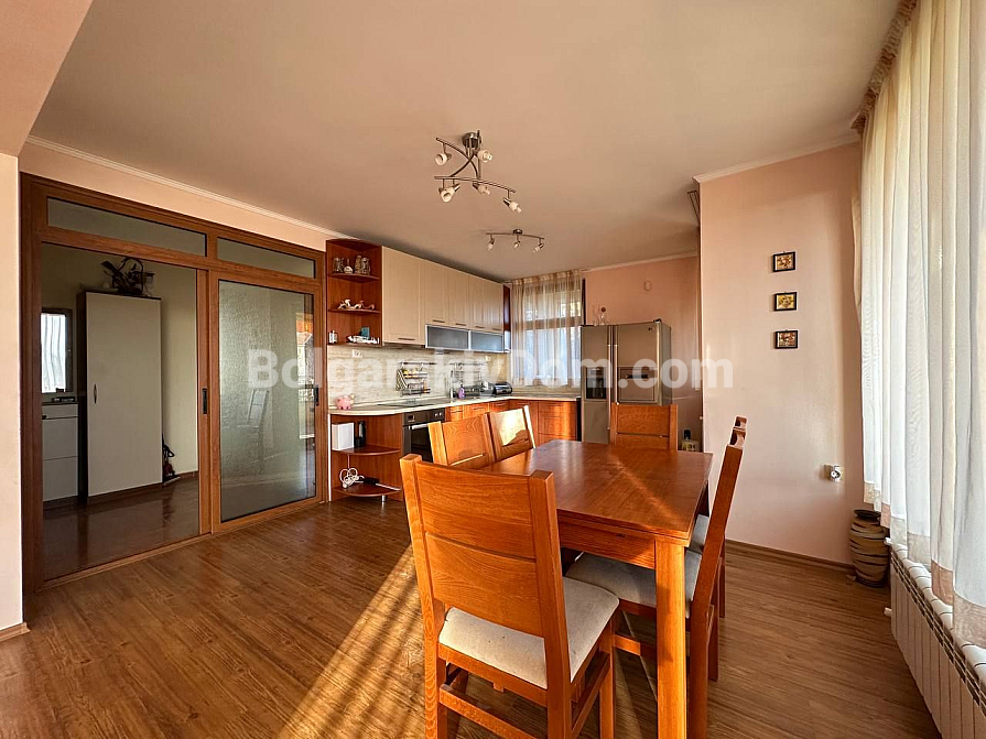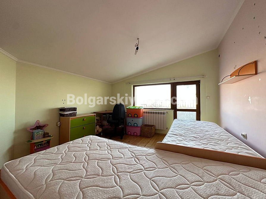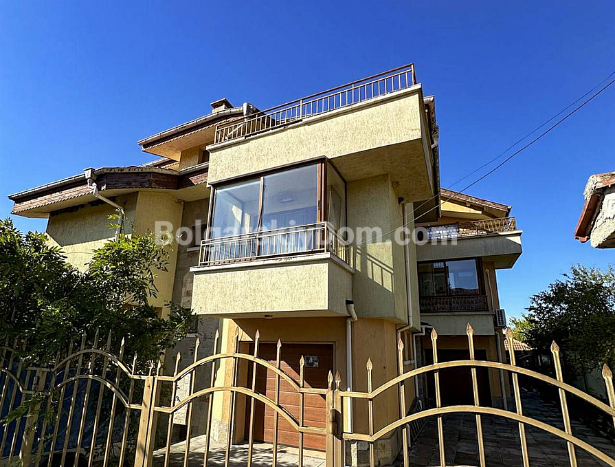Мрієте про власний будинок з видом на гори, але не хочете далеко виїжджати з міста? Тоді цей триповерховий будинок з гаражем та озелененим двором у кварталі Банево міста Бургас — ідеальне рішення! Будинок, розташований біля підніжжя мальовничих пагорбів, повністю мебльований та обладнаний — справжній формат автономної нерухомості «під ключ». Площа вражає: будинок включає три житлові поверхи та великий підвал (59,10 кв.м.) з пральнею, котельнею та просторою напівпідвальною кімнатою, яку можна використовувати як домашній спортзал або хобі-кімнату. На першому поверсі (66,06 кв.м.) розташовані вітальня, кухня та обідня зона. Другий поверх (106,12 кв.м.) має складніше планування: дві спальні, два санвузли та окрема вітальня з кухонним блоком. На третьому поверсі (67,53 кв.м.) розташовані ще дві спальні, одна з яких має велику терасу з панорамним видом на весь Бургас! Бонус — гараж з автоматичними воротами (19,27 кв.м.) та доглянутий, огороджений двір.