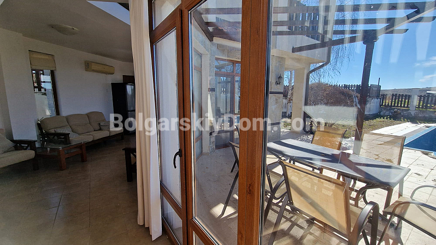 Ваша мрія про будинок з басейном ось-ось здійсниться! Пропонуємо розкішний, просторий двоповерховий будинок площею 146 кв.м з власним басейном і паркуванням в елітному комплексі Vineyard SPA Resort в Ахелої. Ви отримуєте не тільки будинок, а й власну ділянку площею 300 кв.м! І найголовніше — на будинок є готові документи для максимально швидкої угоди. Він повністю мебльований і цілком підходить для цілорічного проживання. Планування наступне: на першому поверсі розташовані простора вітальня, об’єднана з кухнею, туалет та веранда з прямим виходом до вашого особистого басейну та озелененої території. На другому поверсі — дві затишні спальні, дві ванні кімнати (з повноцінними ваннами!) і дві просторі тераси з видом на басейн.