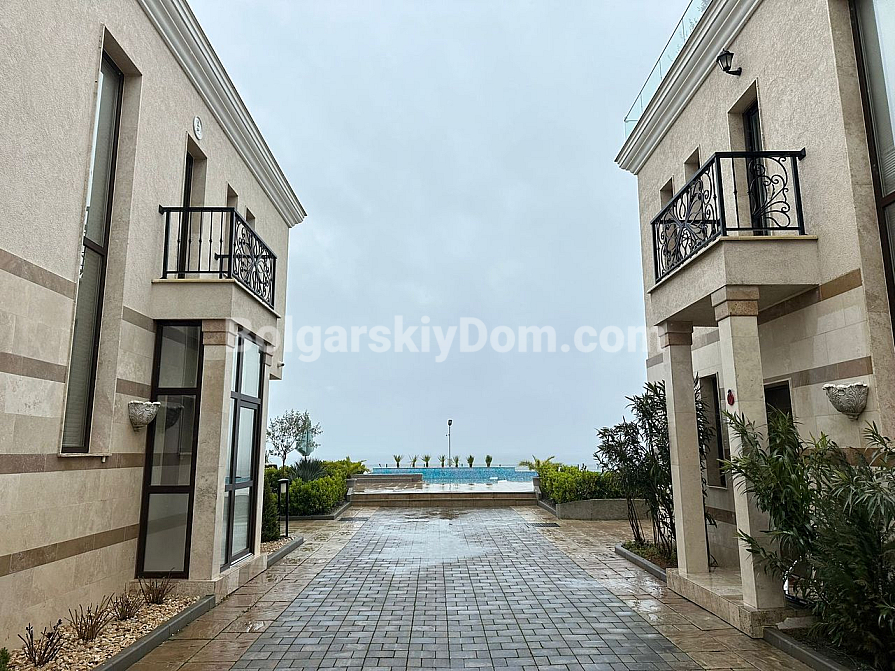 ЖК розташований буквально в п'ятдесяти метрах від моря, яким можна насолоджуватися практично з усієї прилеглої території. До ваших послуг великий басейн, елегантний ресторан, ігровий майданчик для дітей, лобі, паркінг та інші зручності. Такса - 12 євро, комплекс оточений зеленим простором без щільної забудови.