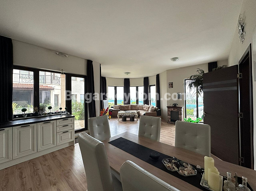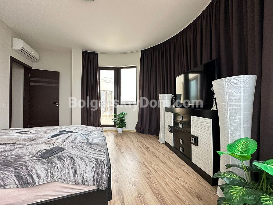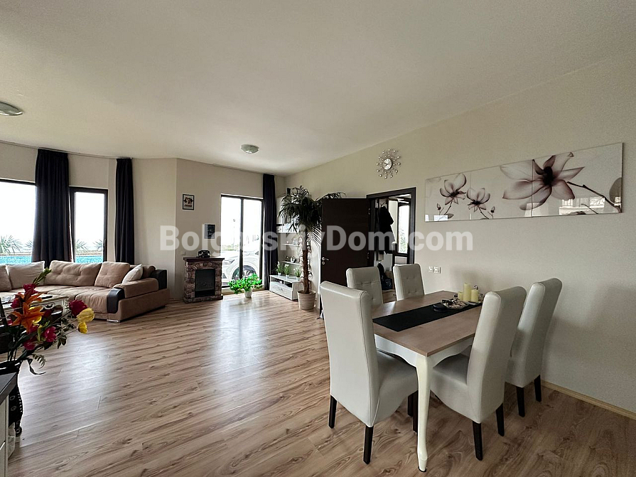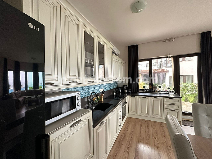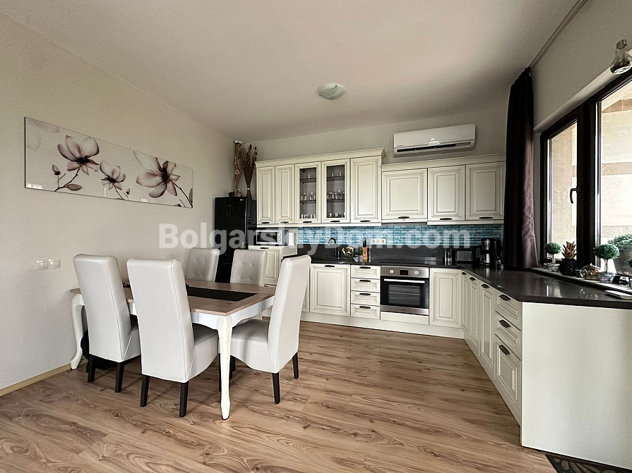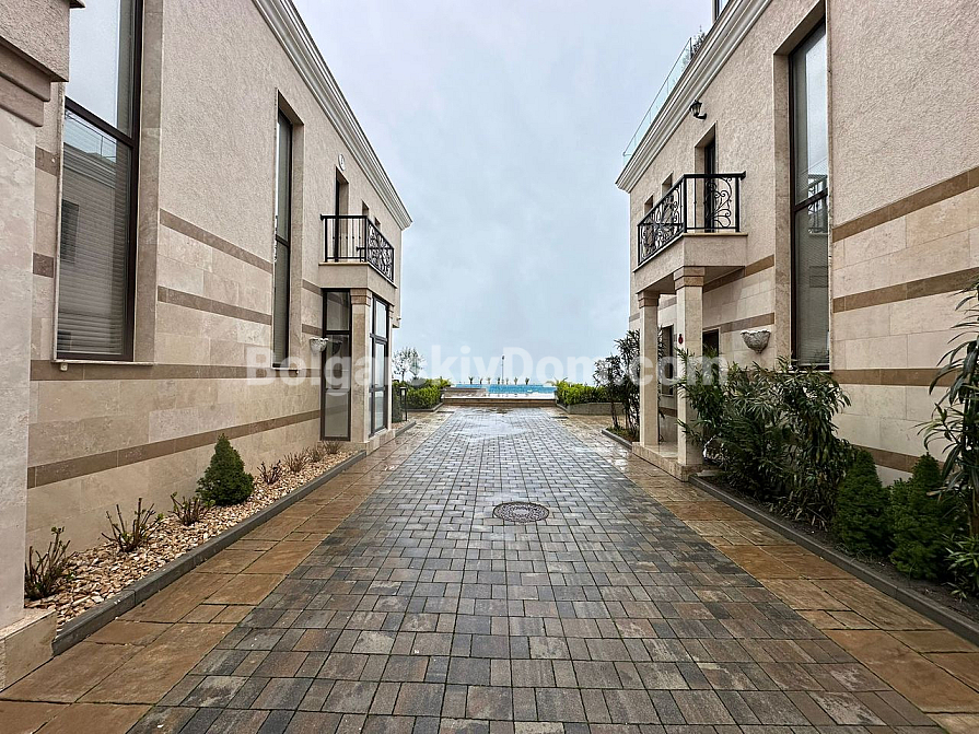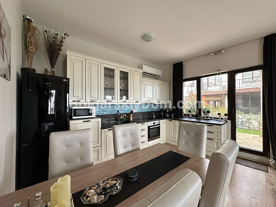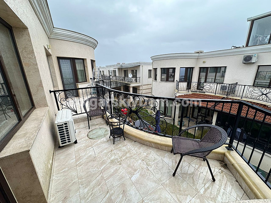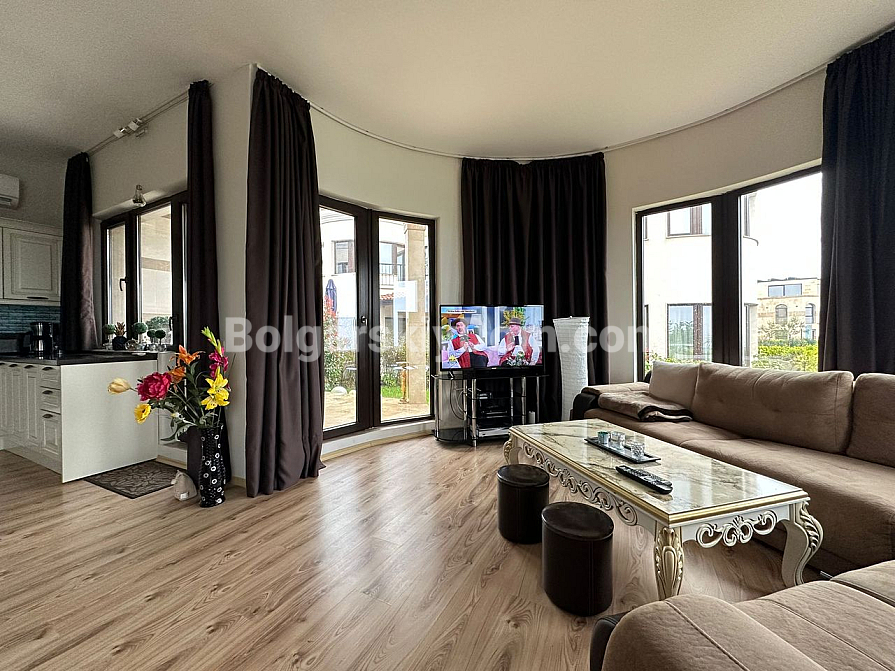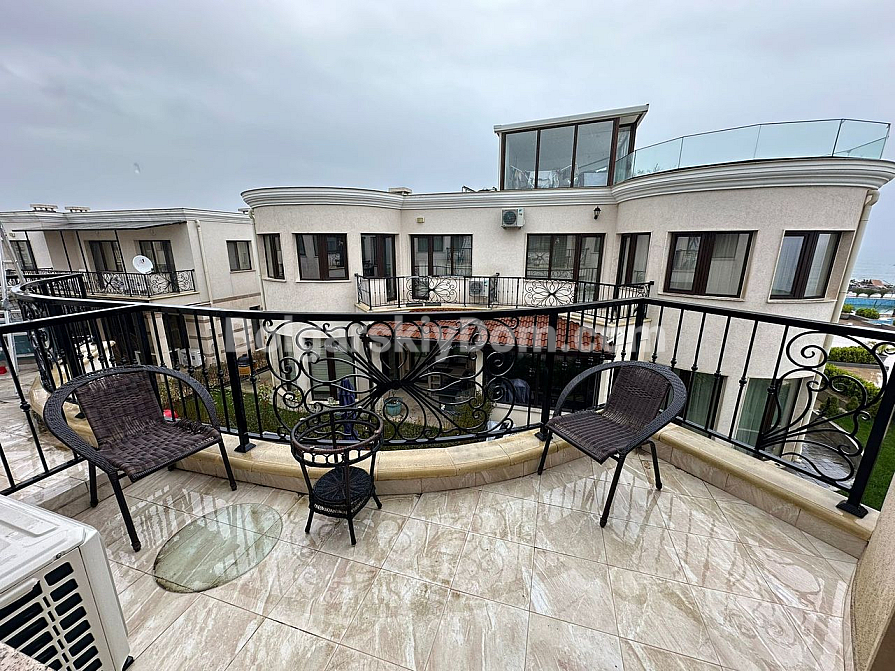 Курортна нерухомість в Болгарії, на 100% відповідає запитам шукачів, які цінують безумовний комфорт, простір і близькість до пляжу! Пропонуємо до розгляду трикімнатну квартиру-мезонет в курортному місті Поморіє на березі Чорного моря. Загальний метраж дворівневого апартаменту становить 152 кв.м., це стильний простір з великою вітальнею формату опен-спейс, еркерними вікнами, окремим виходом у двір і великими терасами, завдяки яким створено кілька зон відпочинку для споглядання за морською гладдю. Спальні окремі і розташовані на другому поверсі, зручне планування з коридором, якісні меблі, текстиль і техніка складають класичний і зручний інтер'єр, який входить в ціну.