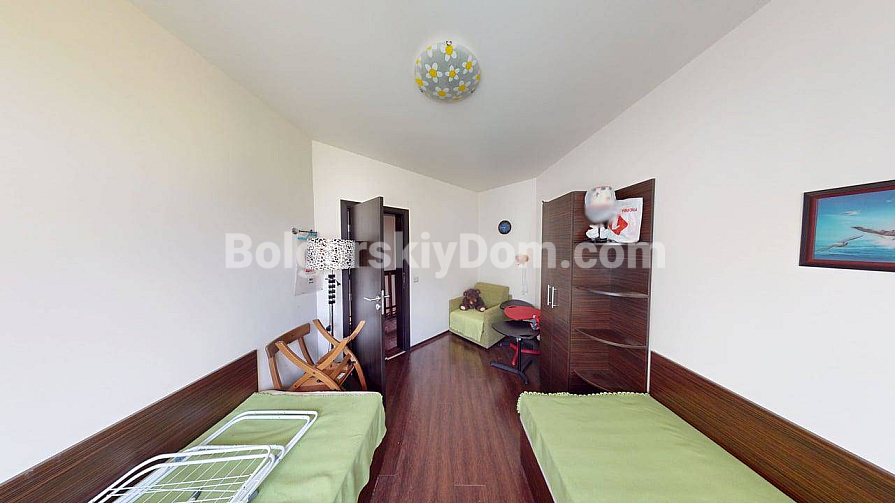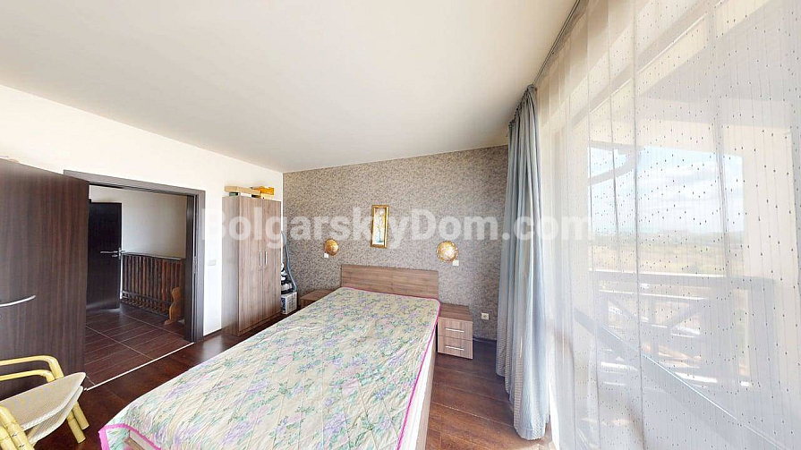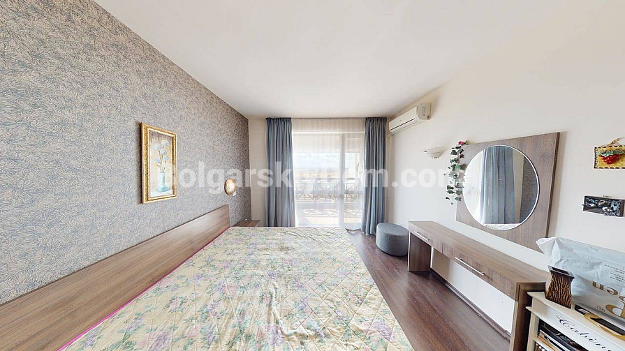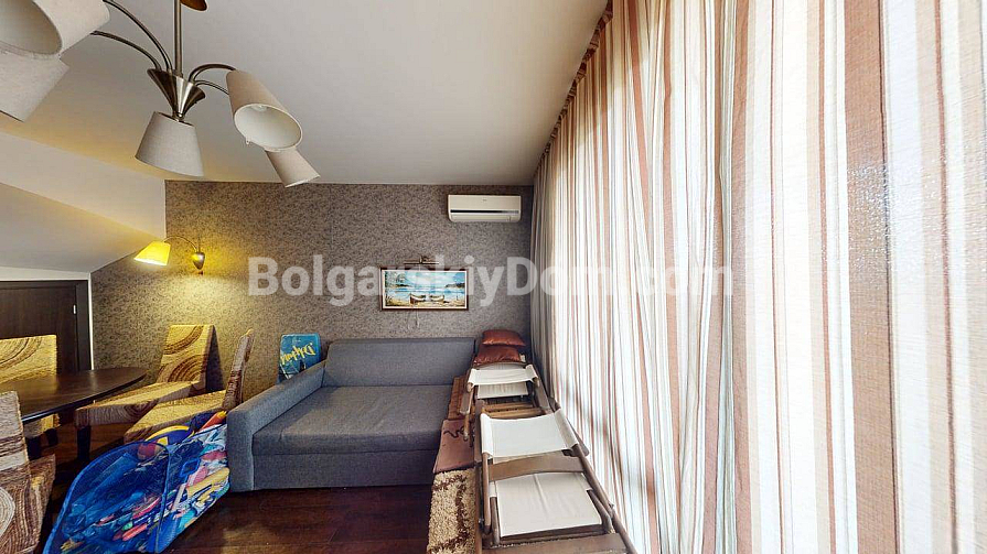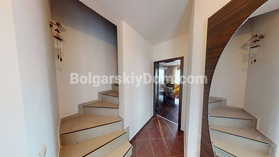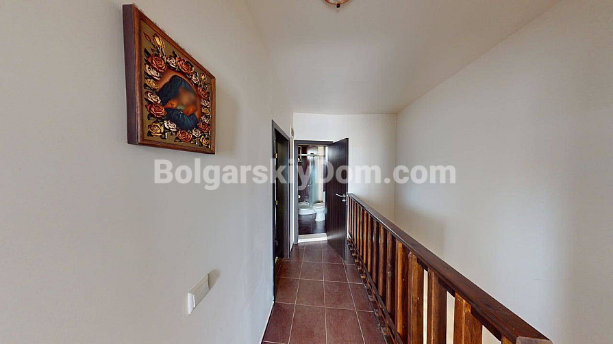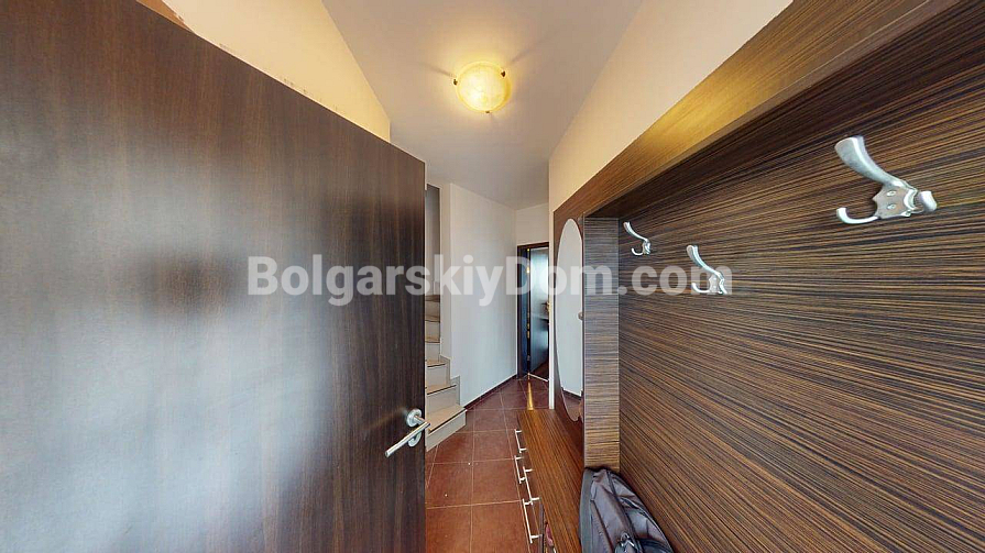 Агентство нерухомості «Болгарський Дім» відкриває продаж: до вашої уваги представлений винятковий приватний будинок площею 116 кв.м у престижному комплексі Imperial Heights, розташованому в мальовничій Кошариці. Інтер’єр вирізняється продуманим зонуванням: на першому поверсі знаходиться світла вітальня з виходом на приватну терасу, а функціонально спроєктована та візуально відокремлена вбудована кухня зберігає ідеальну структуру відкритого планування. На другому поверсі розташовані дві затишні спальні, кожна з виходом на власний балкон; головна спальня пропонує захопливі панорамні види на затоку Сонячного Берега та історичний Несебр, створюючи ідеальне місце для ранкової кави та вечірнього відпочинку. Річний внесок за обслуговування становить 1160 євро, що повністю відповідає рівню приватності та розкоші, які пропонує це унікальне володіння.