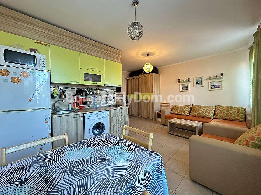 Пропонуємо вашій увазі мебльовану студію площею 33 кв. м у комплексі "Светі Нікола". Ця затишна квартира на першому поверсі поєднує комфортний простір та доступну ціну. Світлий та продуманий інтер'єр не потребує додаткових вкладень, що дозволяє одразу насолоджуватися проживанням. Незважаючи на відсутність балкона, планування розроблено для максимальної зручності та функціональності.