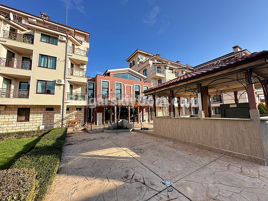 Комплекс "Светі Нікола" розташований за 2,5 км від моря, у тихій частині курорту, що ідеально підходить для спокійного відпочинку та життя. Навколо комплексу є вся необхідна інфраструктура: продуктові магазини, кафе та зупинки транспорту, що забезпечують легкий доступ до моря та зручностей Сонячного Берега. Затишна атмосфера та комфортна інфраструктура.