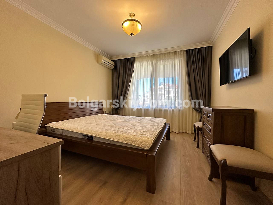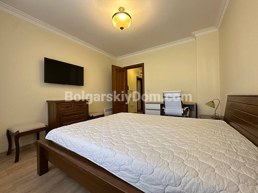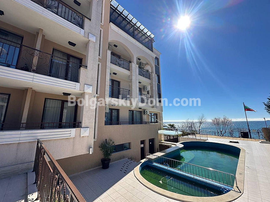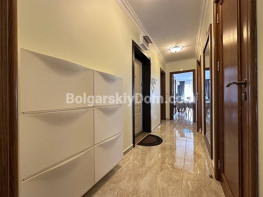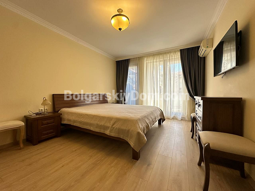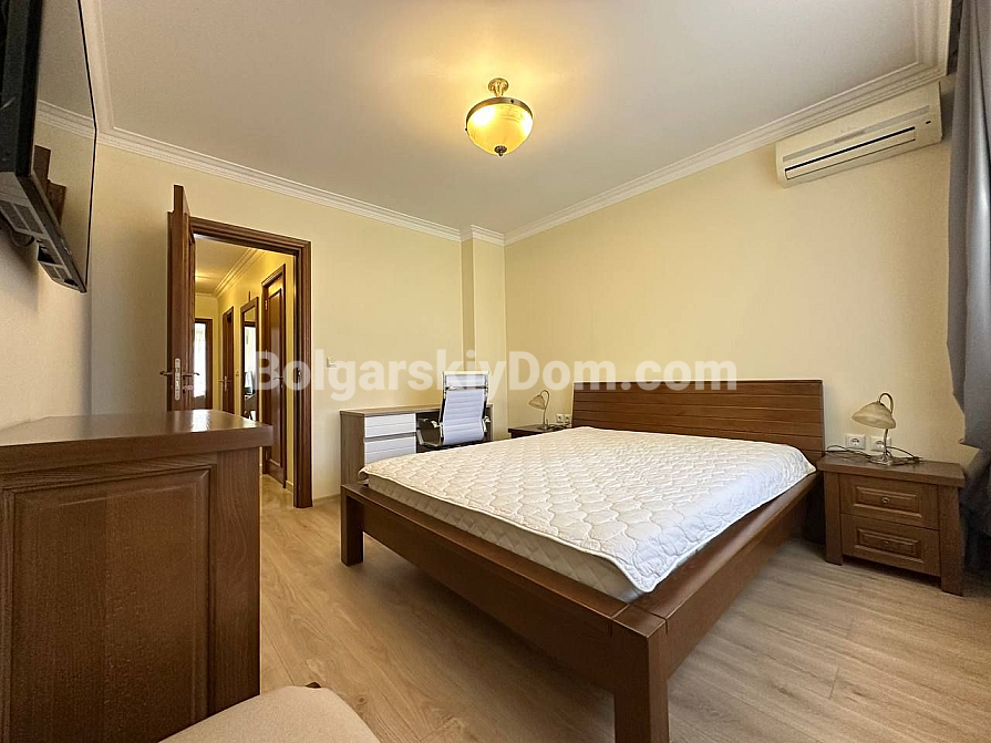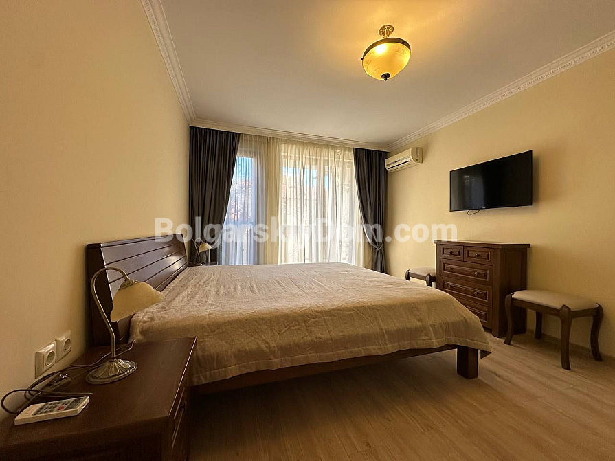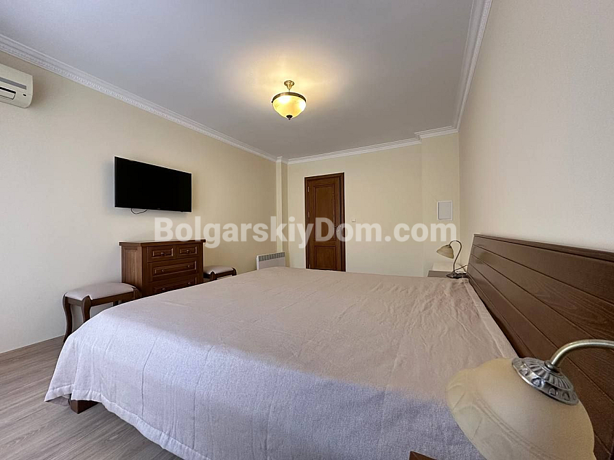 Шикарна пропозиція в курорті Святий Влас - простора трикімнатна квартира площею 145 кв.м в фешенебельному комплексі на першій лінії. В апартаменті зроблений хороший ремонт. Якісні меблі та техніка створюють сучасний і функціональний інтер'єр. Крім великої вітальні з функціональною кухнею і двох окремих спалень, в апартаменті є два санвузли, комора і затишна тераса.