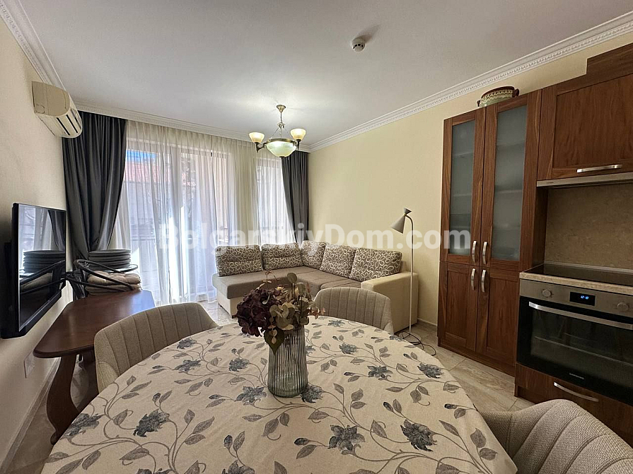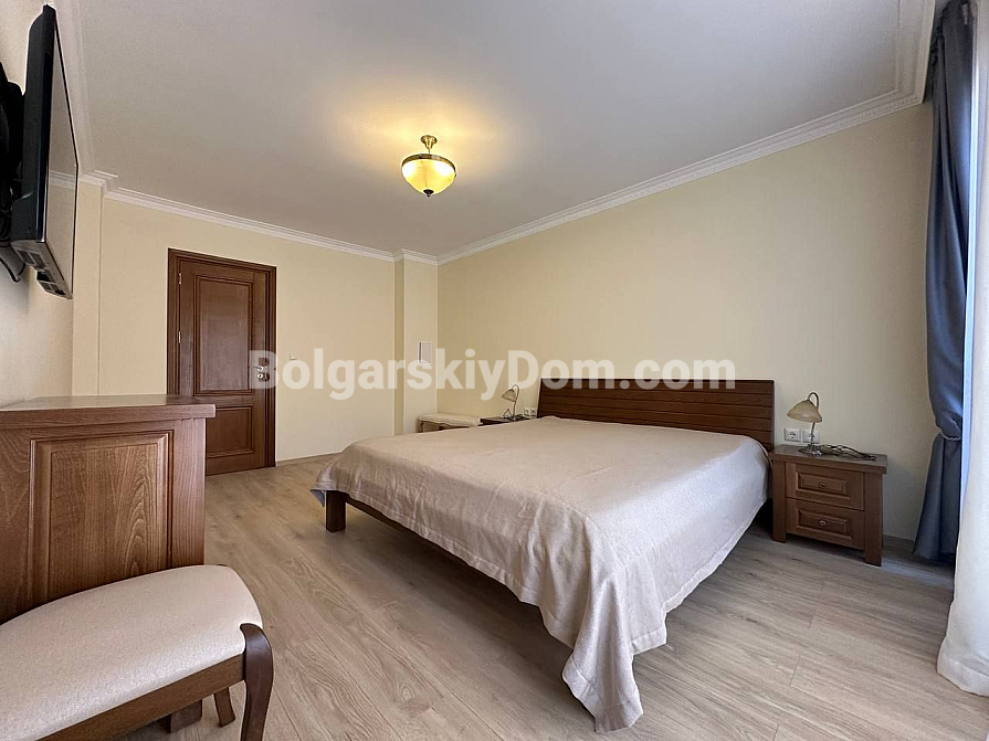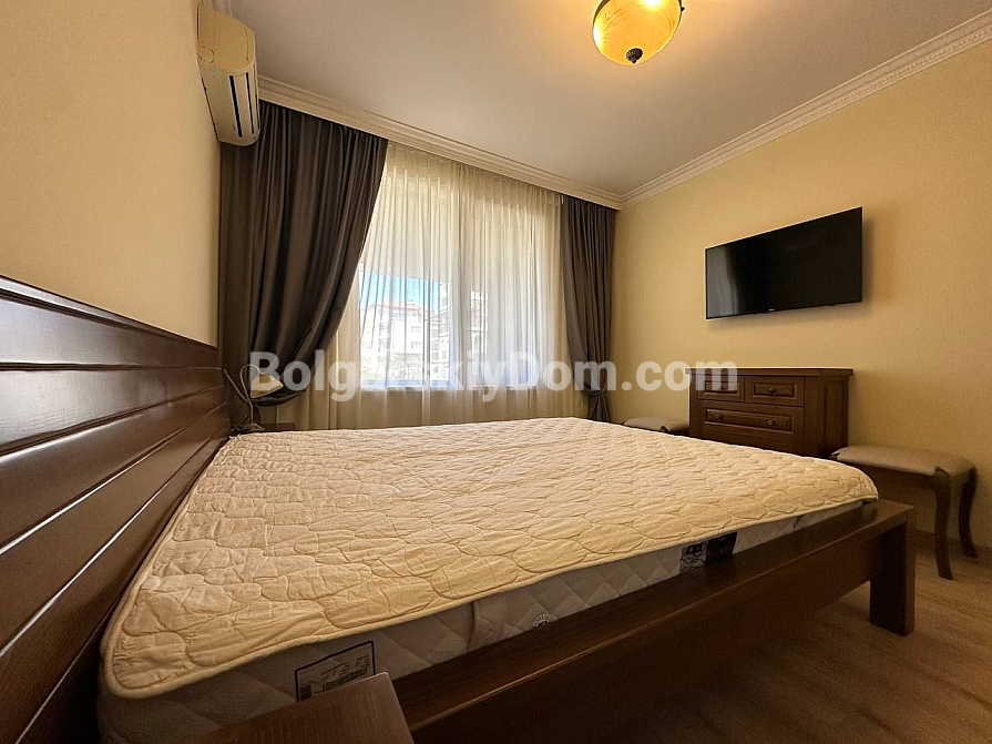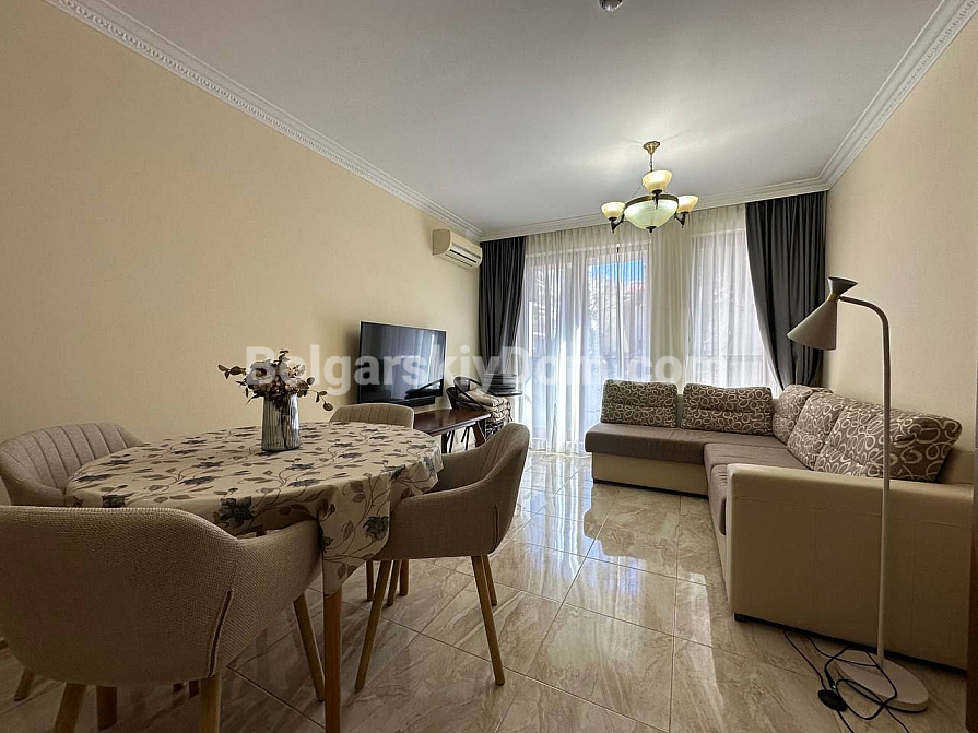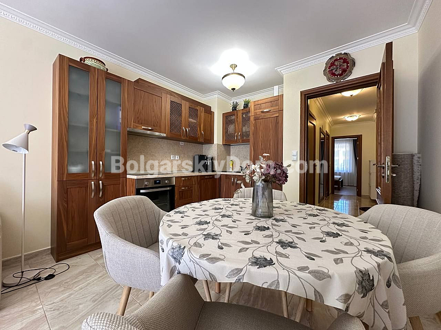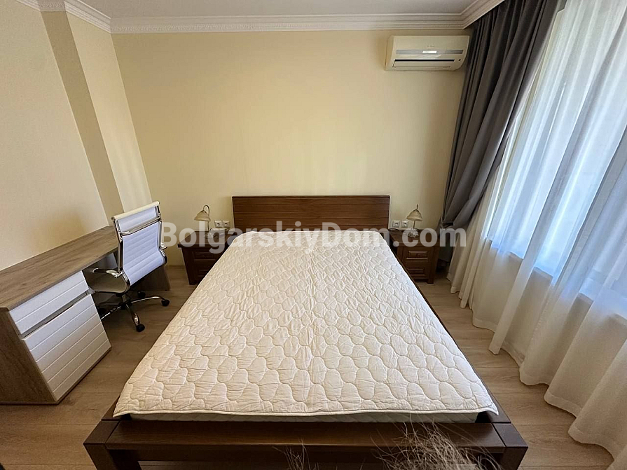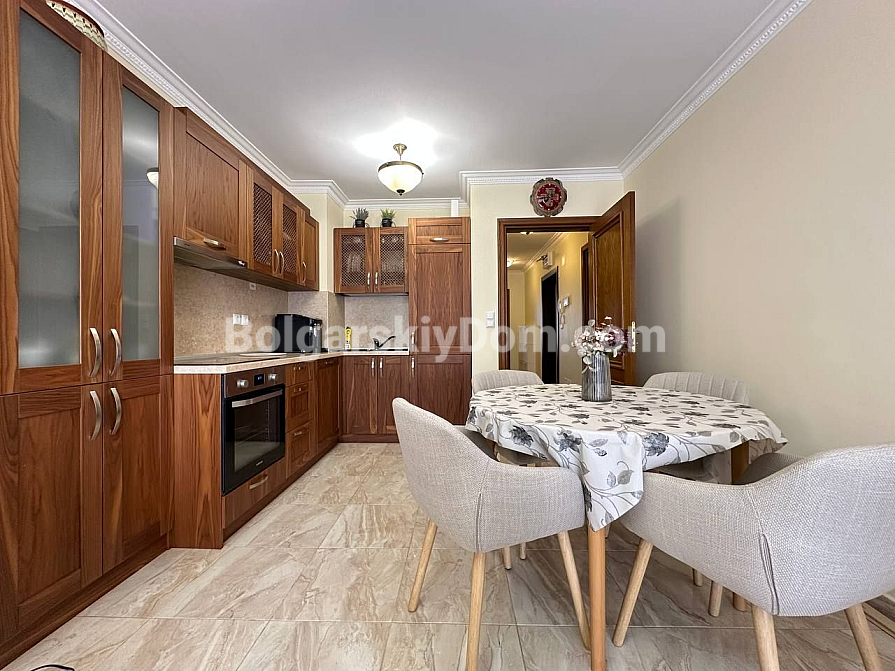 Шикарна пропозиція в курорті Святий Влас - простора трикімнатна квартира площею 145 кв.м в фешенебельному комплексі на першій лінії. В апартаменті зроблений хороший ремонт. Якісні меблі та техніка створюють сучасний і функціональний інтер'єр. Крім великої вітальні з функціональною кухнею і двох окремих спалень, в апартаменті є два санвузли, комора і затишна тераса.