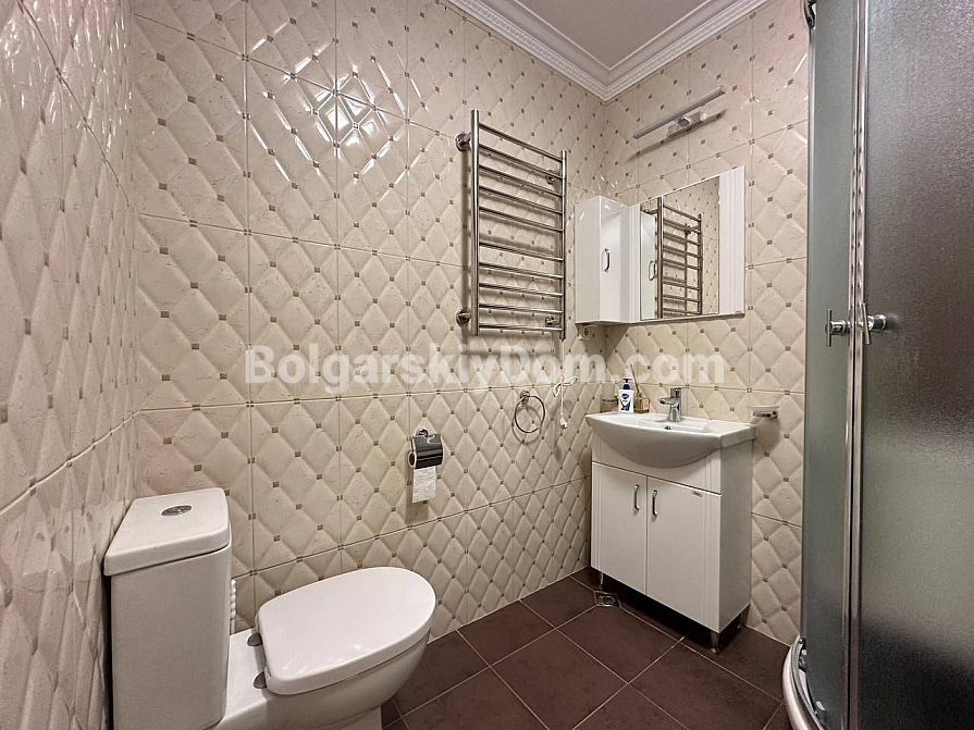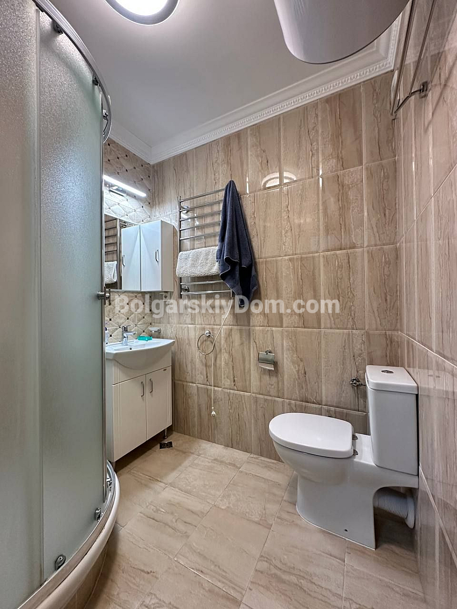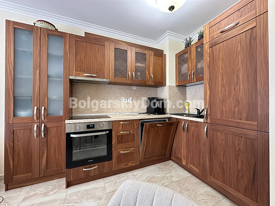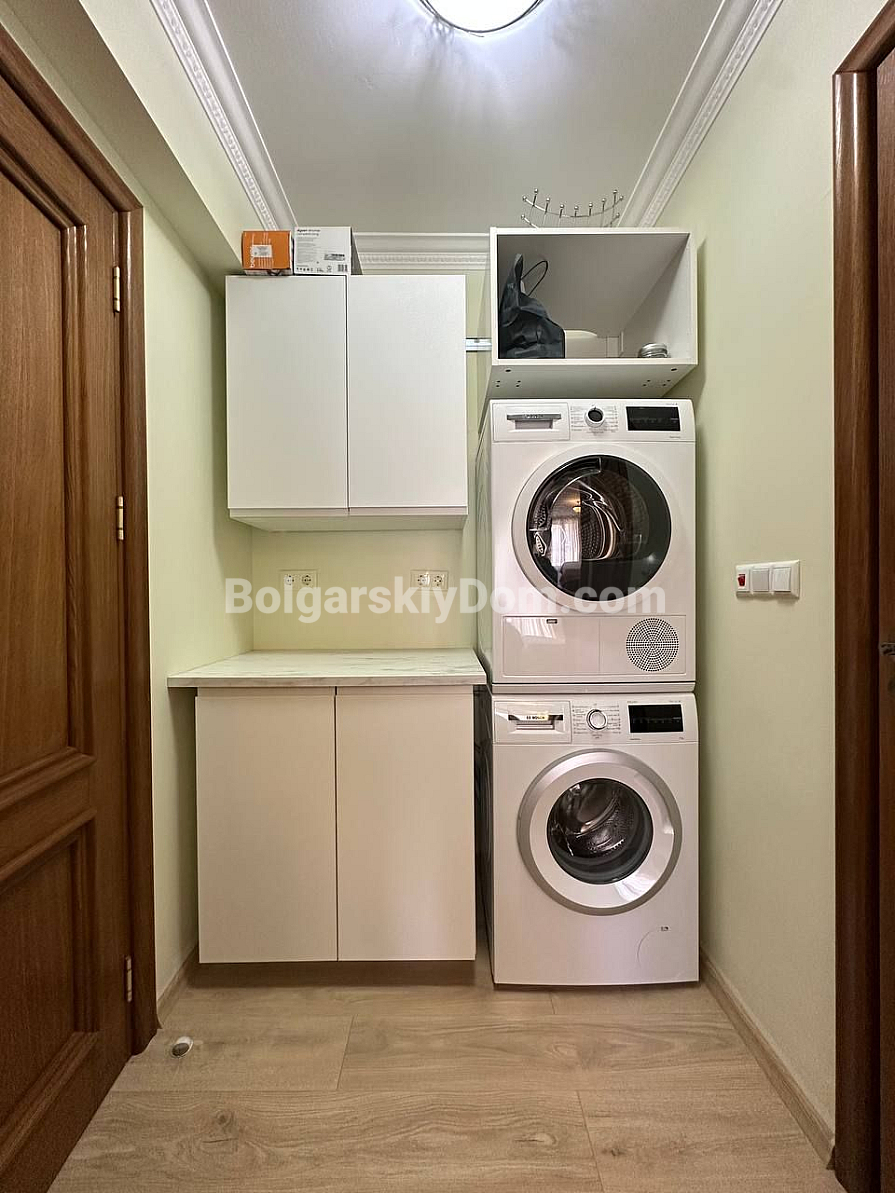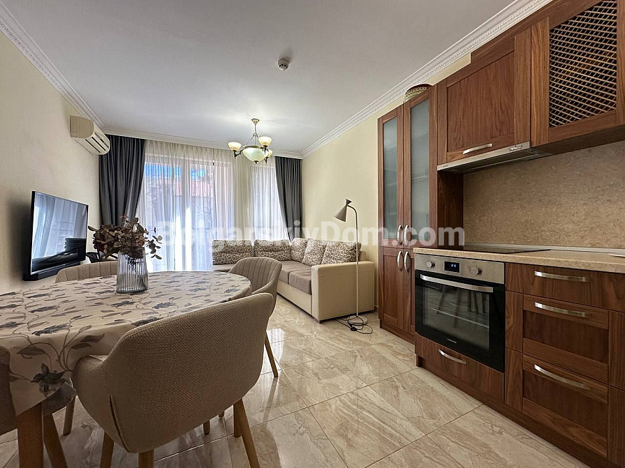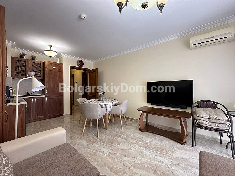 Шикарна пропозиція в курорті Святий Влас - простора трикімнатна квартира площею 145 кв.м в фешенебельному комплексі на першій лінії. В апартаменті зроблений хороший ремонт. Якісні меблі та техніка створюють сучасний і функціональний інтер'єр. Крім великої вітальні з функціональною кухнею і двох окремих спалень, в апартаменті є два санвузли, комора і затишна тераса.