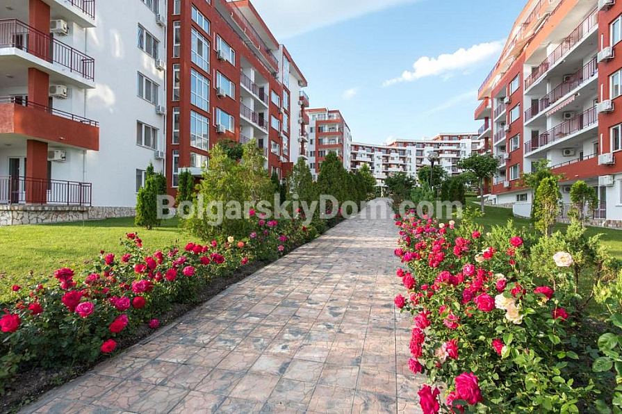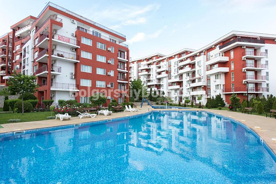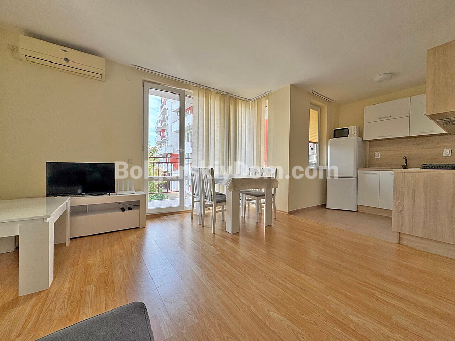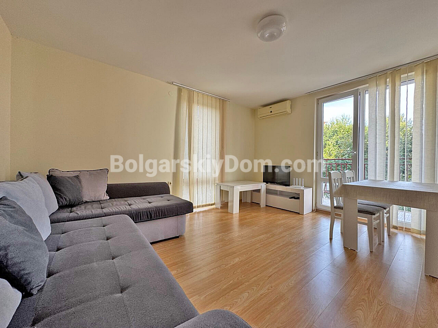 Простора двокімнатна квартира площею 70 кв.м. розташована на другому поверсі будинку з ліфтом. Зручне планування включає передпокій, світлу вітальню з кухонною та обідньою зонами, окрему спальню, ванну кімнату з душовою кабіною та балкон із видом на зелену територію комплексу. Житло пропонується з меблями та побутовою технікою, що дозволяє відразу заїхати та насолоджуватися комфортом. Квартира ідеально підходить як для відпочинку, так і для цілорічного проживання.