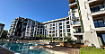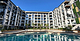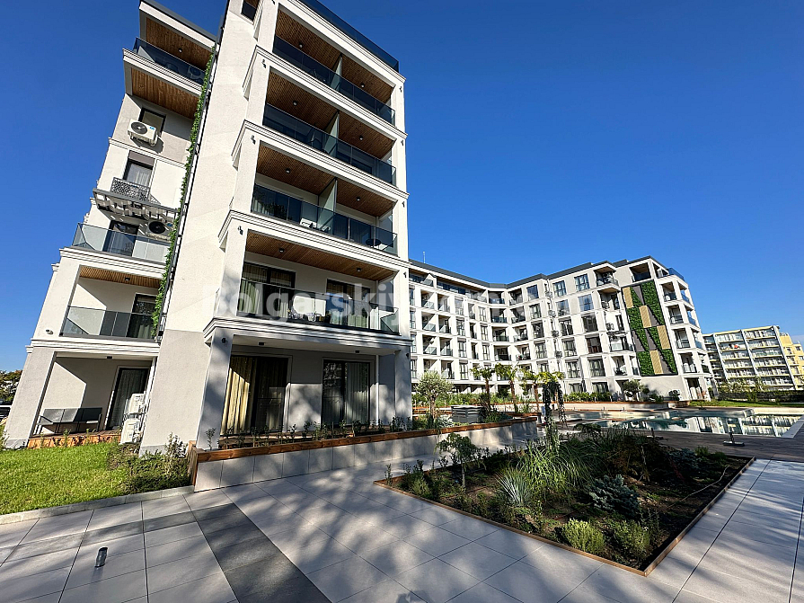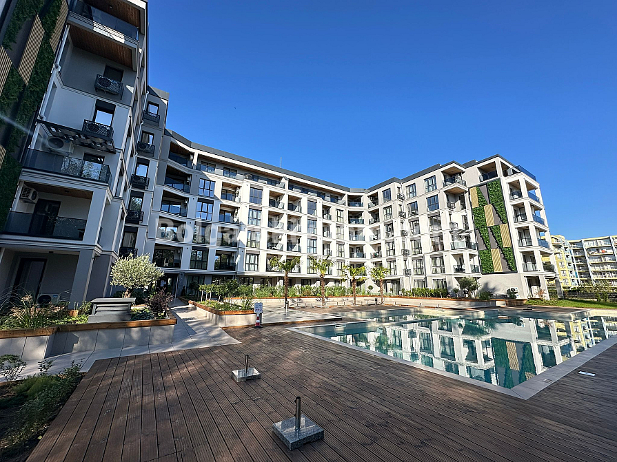 Комплекс розташований у зеленій частині курорту: з вікон відкривається вид на ландшафтний парк з доріжками для скандинавської ходьби, а до моря — 12 хвилин неспішним кроком. У п'яти хвилинах ходьби — зупинка маршруток до центру з його ресторанами та супермаркетами. Район вибирають за тишу, відсутність туристичного трафіку та сусідство з пішохідною алеєю, що веде до бухти Сонячного берега. Тут життя тече в ритмі відпустки, навіть якщо ви залишаєтеся на весь рік.