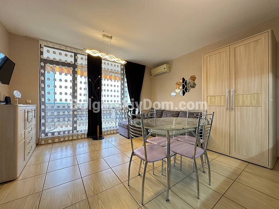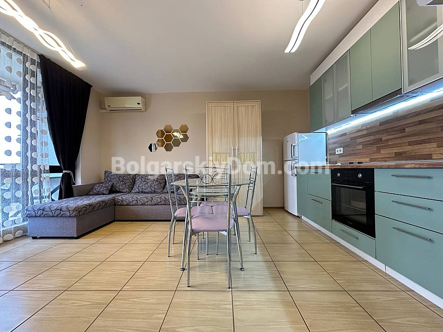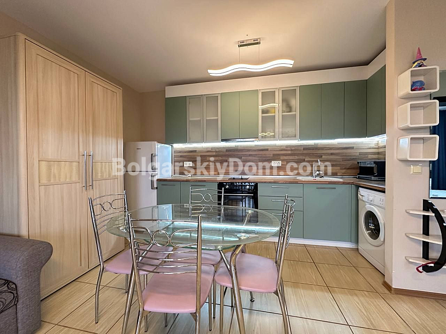 Несебр — район, де тиша поєднується з курортним ритмом! АН Болгарський Дім пропонує до продажу двокімнатну квартиру в ЖК «Віяна», розташовану на четвертому поверсі чотириповерхового будинку, площею 61 кв.м. Передпокій, вітальня з просторою кухнею, обладнаною якісною технікою, переходить у зону відпочинку, окрема спальня з елегантними меблями. Великий балкон з видом на зелену територію, рівнину та гори ідеально підходить для ранкової кави або вечірнього відпочинку. Квартира в ідеальному стані, продається з меблями та технікою — готова до проживання або здачі без додаткових вкладень.