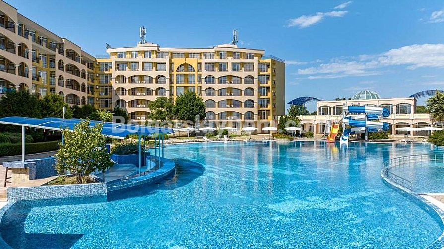 Midia Grand Resort — комплекс з розвиненою внутрішньою інфраструктурою: басейн, водні гірки, зони відпочинку, спортивні майданчики, ресторан, охорона, паркінг. Все знаходиться на першій лінії та в пішій доступності від кафе, магазинів і супермаркетів. Район підходить для сімей та тих, хто шукає спокійне місце поблизу Сонячного Берега та Несебра. Дзвоніть — розповімо, як це працює на практиці, і покажемо квартиру особисто.