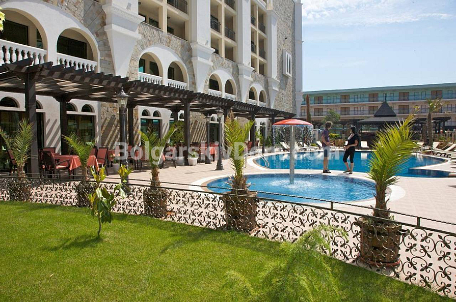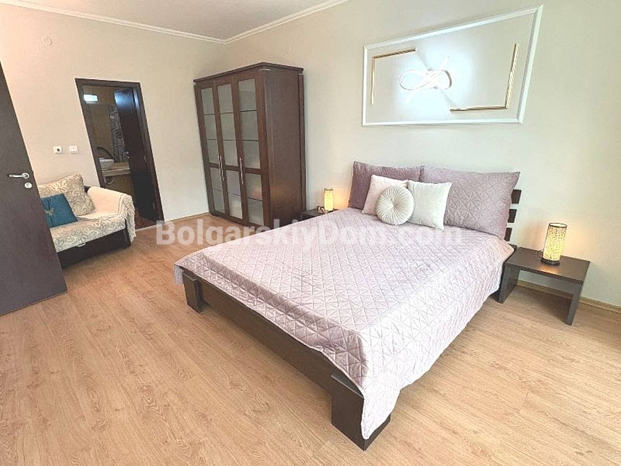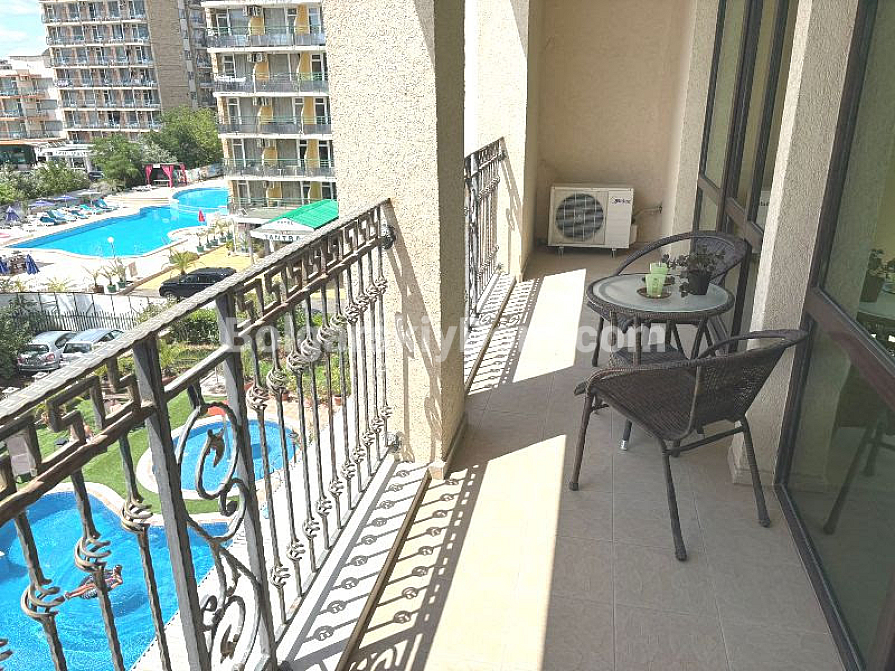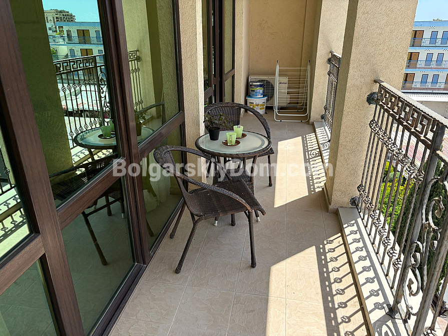 Житловий комплекс розташований всього за 400 метрів від моря, в одному з найзручніших районів Сонячного берега. Поруч є все необхідне: магазини, аптеки, ресторани, зупинки — все в пішій доступності. Сам комплекс доглянутий, з красивою територією, басейном, ліфтом та затишною атмосферою. Підходить для цілорічного проживання, відпочинку чи вигідної оренди. Такса обслуговування — 8 євро за кв.м. Чудове співвідношення локації, площі і вартості — відмінний вибір без компромісів.