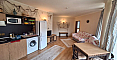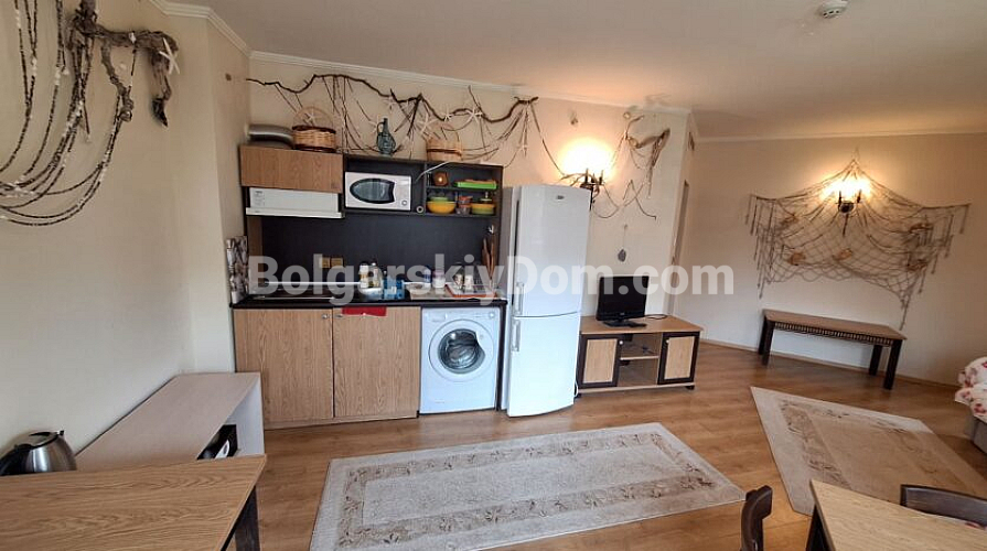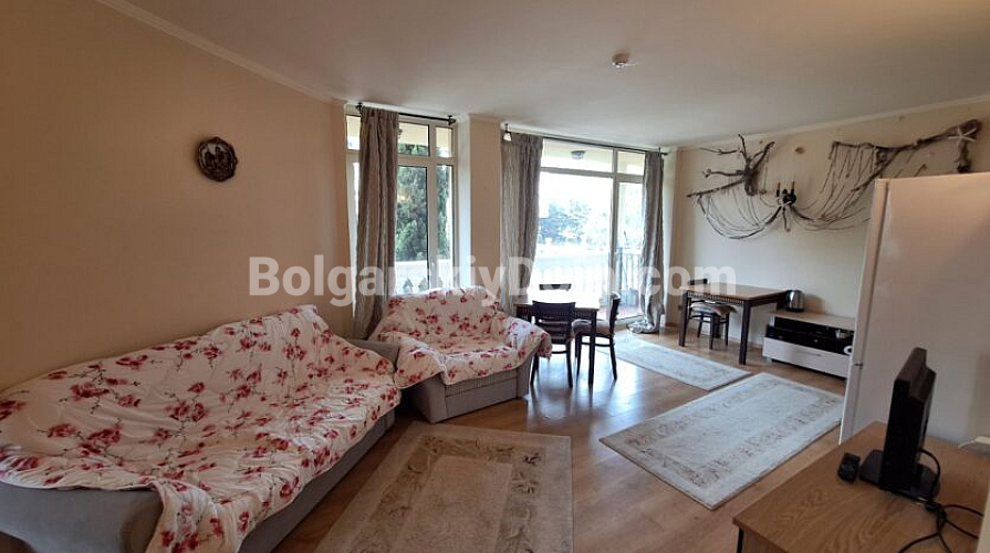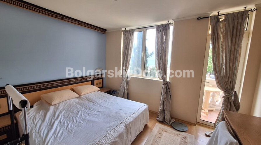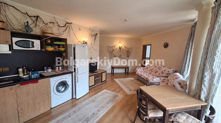 Просторий двокімнатний апартамент площею 82 кв.м розташований у комплексі Atrium Beach на курорті Єленіте, всього за 40 м від пляжу із золотистим піском. Житло знаходиться на другому поверсі будівлі та має зручне планування: простора прихожа, світла вітальня з кухонним боксом, окрема спальня, ванна кімната з ванною та дві тераси з чудовим видом на море. Південне розташування та панорамні вікна наповнюють квартиру світлом і створюють відчуття затишку. Апартамент повністю мебльований та готовий до проживання.