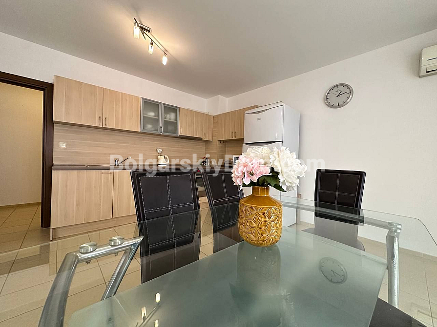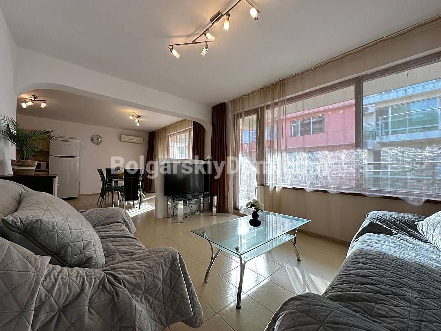Увага-увага, поповнення житлового фонду! Унікальна пропозиція в самому центрі Поморія — простора двокімнатна квартира всього за 50 метрів від центрального пляжу, в районі готелю «Діана». Апартамент розташований на 3 поверсі житлового будинку з Актом 16, без такси за обслуговування. Площа квартири 97 кв.м., включно з окремою коморою, що, погодьтеся, приємний бонус і загалом чудовий метраж для комфортного проживання. Простора вітальня, затишна спальня, якісні меблі, бездоганний житловий стан — тут на 100% все готово для комфортного відпочинку або переїзду без зайвих витрат.