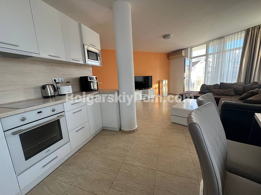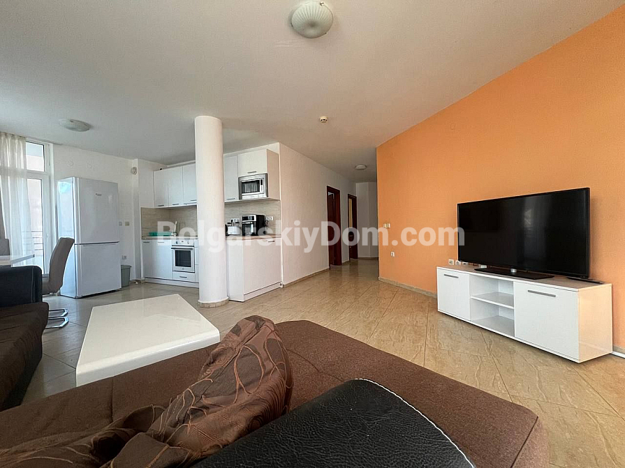 Новинка! Пропонуємо вашій увазі простору трикімнатну квартиру в комплексі Сан Вілладж на Сонячному Березі — практично в самому центрі курортного життя! Розташована на третьому поверсі шестиповерхового будинку, її площа становить 101 кв.м. Квартира приємно здивує нових власників свіжим ремонтом, стильною меблями та всією необхідною технікою. З балкона відкривається мальовничий вид на басейн — ідеальне місце для ранкової кави або вечірнього відпочинку. Квартира повністю готова до заселення, а плата за обслуговування — лише 8 євро на рік, погодьтеся, це дуже вигідно. До моря — всього 650 метрів.