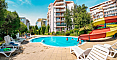 Житловий комплекс Crown Fort Club розташований всього за 150 метрів від пляжу та, порівняно із сусідніми ЖК, має доволі розвинену інфраструктуру: тут є ресторани, продуктові магазини, тренажерна зала, сауна, тенісні корти, більярд, міні-гольф і паркінг. Територія охороняється, працює цілодобова охорона. Поруч зупинка транспорту, супермаркет та десятки інших зручностей. Такса – 14,5 євро.