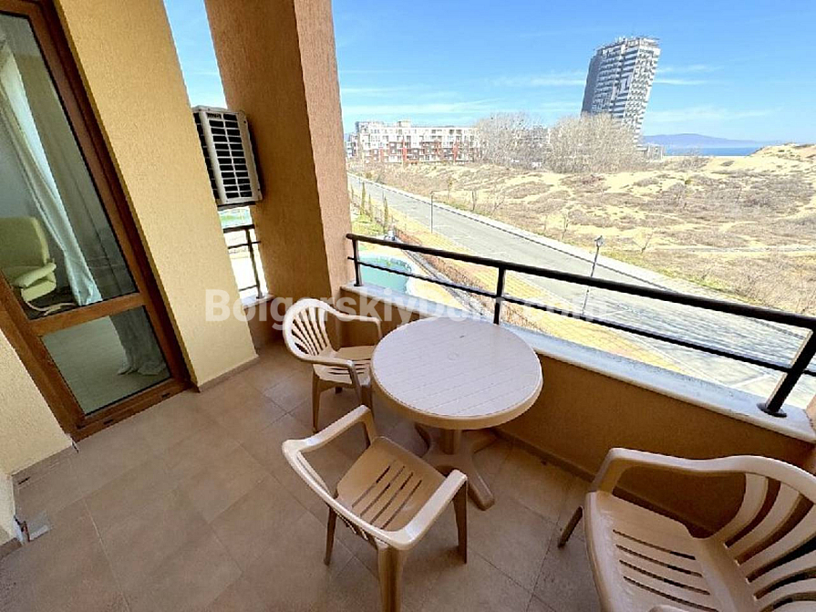 Прямо біля моря видовий апартамент за вигідною ціною! АН Болгарський Дім виставляє на продаж апартамент з однією спальнею 67 кв.м на третьому поверсі комплексу Голден Біч в Сонячному Березі. Житло готове до життя: затишний передпокій, вітальня з зоною кухні, спальня, санвузол і тераса з морським видом для вечірнього релаксу. Повністю укомплектований меблями і технікою, в ідеальному стані. Акт 16 підтверджує готовність, а перша лінія робить апартамент відмінним вибором для відпочинку або доходу від оренди. Максимальна ліквідність-тільки у нас!