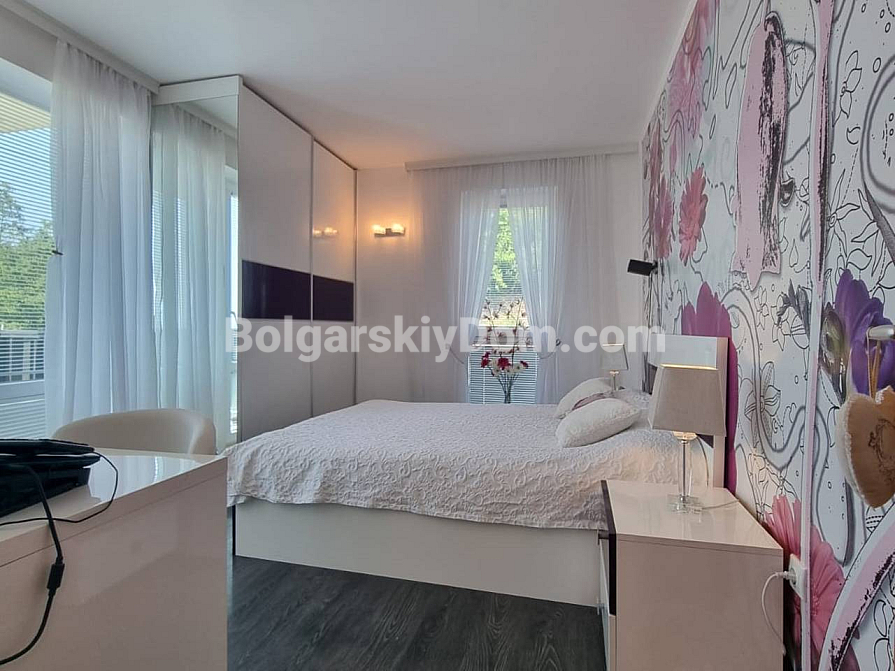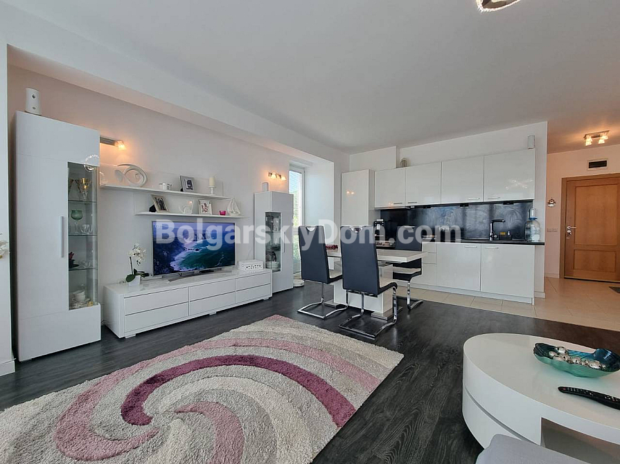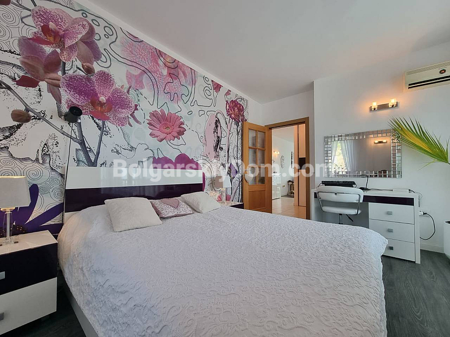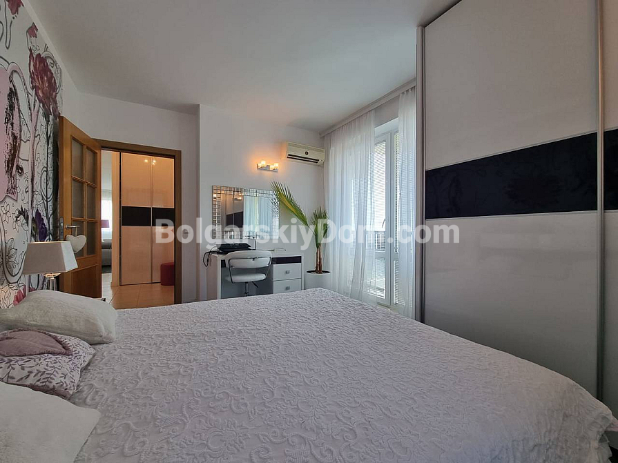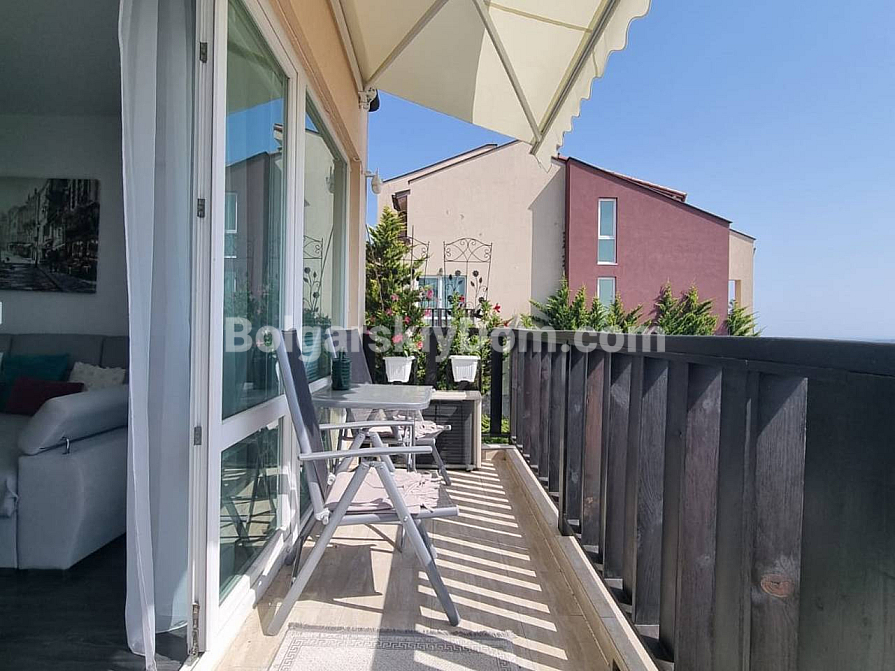 Вид на море та гори у вашій новій квартирі за доступною ціною! АН Болгарський Дім представляє двокімнатну квартиру площею 81,8 кв.м на першому поверсі комплексу Château Panorama у Кошариці. Апартамент включає передпокій, сонячну вітальню з кухнею та обідньою зоною, затишну спальню з власним балконом, санвузол із душем та ще один балкон з приємним видом на море та Сонячний Берег. Повністю укомплектована якісними меблями та технікою, з кондиціонером. Житло у відмінному стані, готове для проживання або здачі в оренду. Зручне планування та розташування на першому поверсі полегшують повсякденне життя, а низька такса обслуговування 560 євро на рік мінімізує витрати.