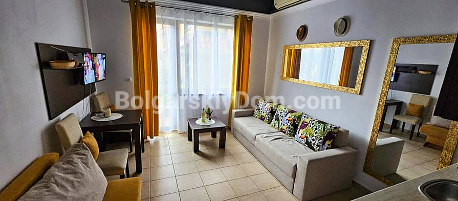 Стан нової нерухомості! Пропонується затишна квартира-студія у престижному СПА-комплексі Діамант Резиденс, який розташований всього за кілька кроків від одного з найкрасивіших піщаних пляжів Сонячного берега. Апартамент площею 30 кв.м. знаходиться на партерному поверсі та включає світлу житлову кімнату з кухонним блоком, ванну кімнату з душовою кабіною та терасу. Квартира повністю мебльована, перебуває у хорошому стані та готова до проживання без додаткових витрат. Підключені побутові тарифи на електроенергію та воду. Чудовий формат як для себе, так і для інвестицій – чекаємо на ваш дзвінок!