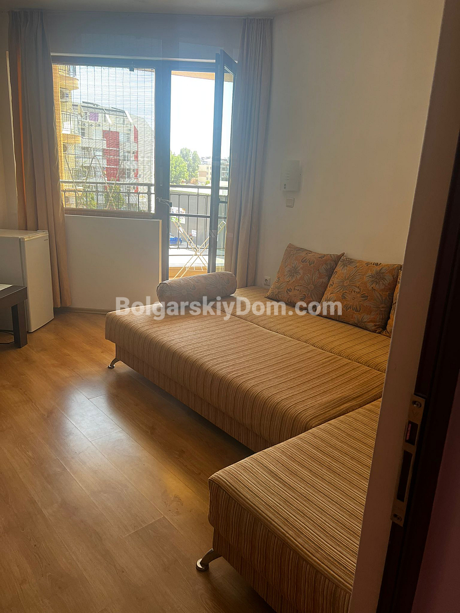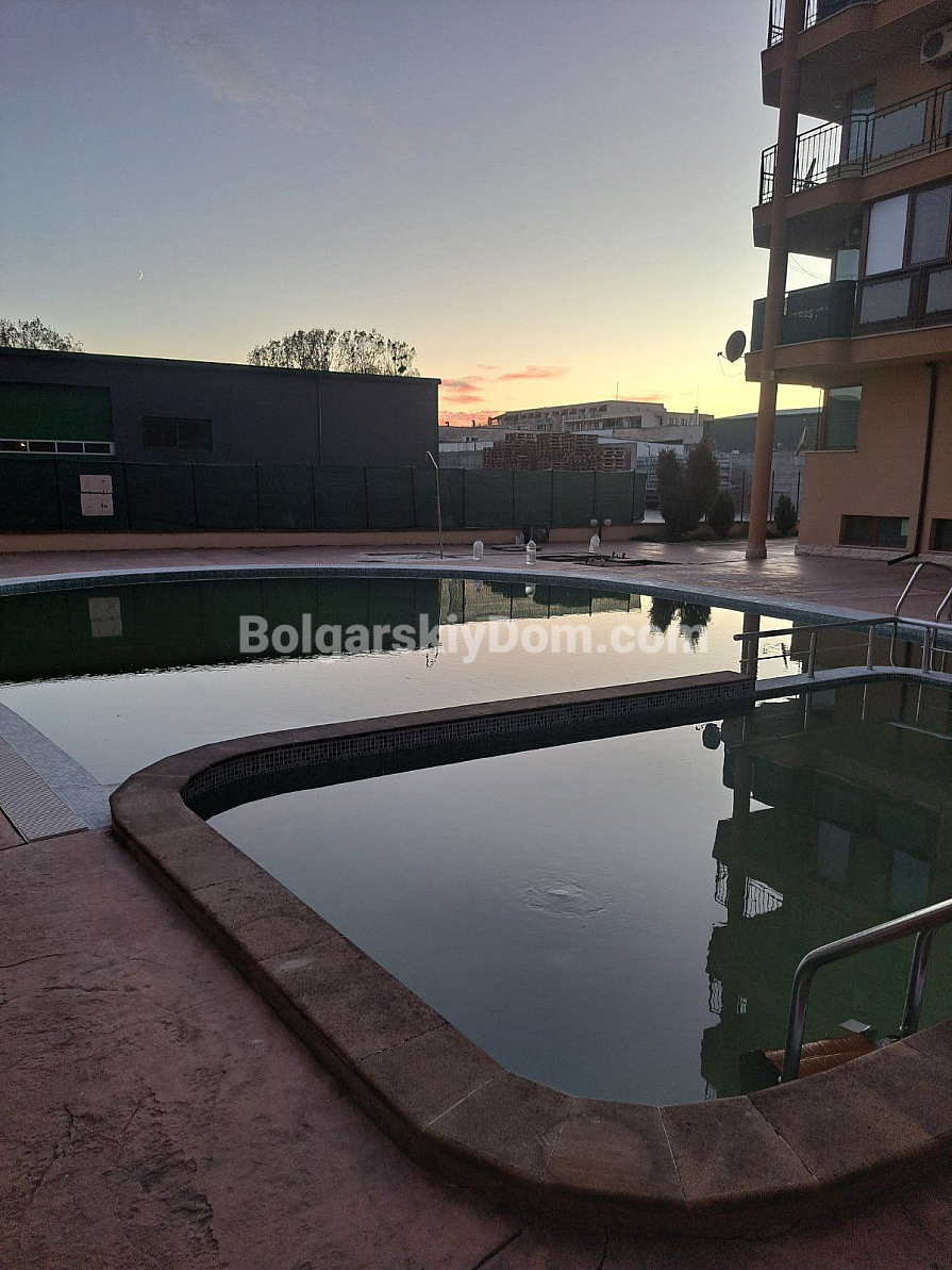Нарешті новинка, у якій немає жодних «але»! Затишна та простора двокімнатна квартира після недавнього ремонту в комплексі Amadeus 5 на курорті Сонячний берег – це рідкісна можливість придбати нерухомість з мінімальною платою за обслуговування, всього 84 євро на рік (менше 1% пропозицій на ринку). Апартамент площею 64,2 кв.м розташований на 3-му поверсі, всього за 700 метрів від пляжу та в пішій доступності від центру курорту. У квартирі функціональне планування: простора вітальня з великою кухнею та обідньою зоною (рідкість для цього району, де часто зустрічаються лише міні-кухні), окрема спальня, повністю обладнаний санвузол, а також два балкони – по одному в кожній кімнаті, з видом на доглянуту територію та басейн. Апартамент повністю мебльований: встановлено кондиціонер, холодильник з морозильною камерою, пральну машину, шафи для зберігання, столи та стільці.