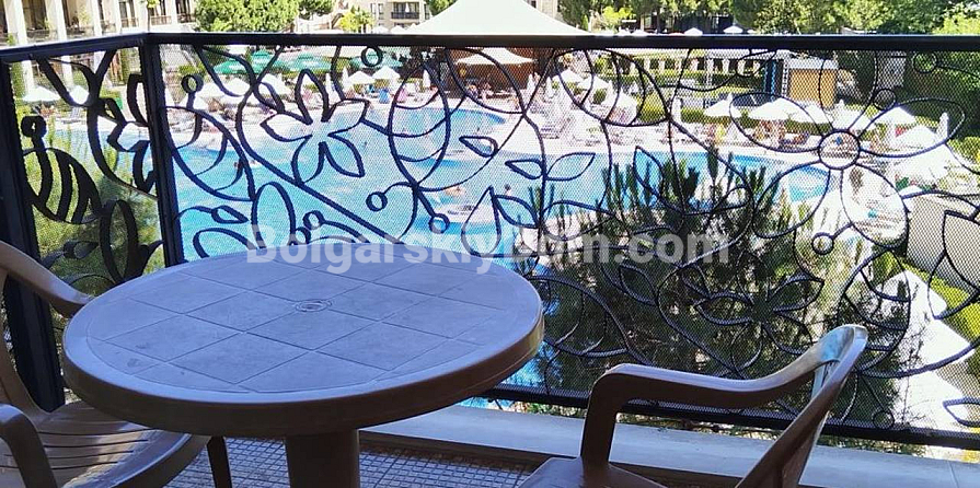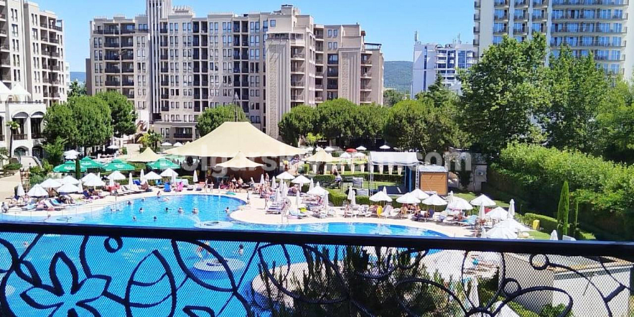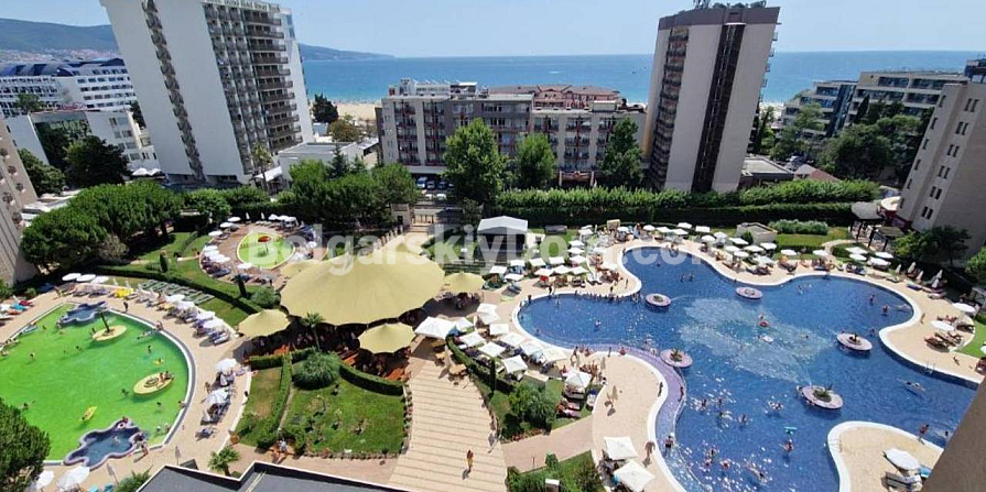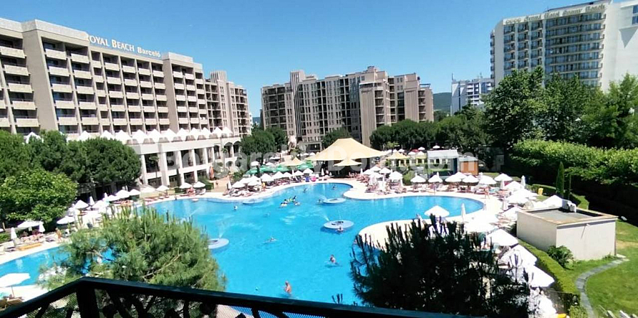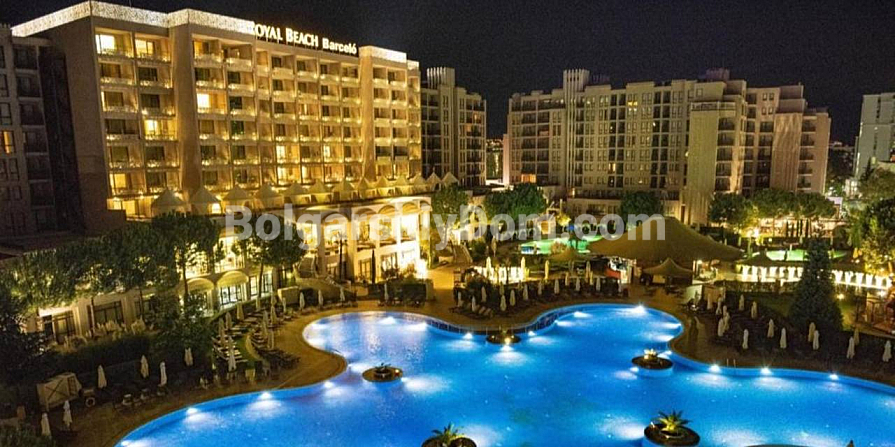 Комплекс Barceló Royal Beach працює цілий рік, розташований майже в самому центрі курорту Сонячний Берег та надає послуги преміум-рівня. На території є басейни з зонами відпочинку, дитячий майданчик та клуб, фітнес-зал, SPA та велнес-центр, кабінети масажу, ресторани, бари та власний торговий центр. Закрита охоронювана територія з відеоспостереженням і паркінгом. Такса обслуговування становить 17 євро. Готова до показів, телефонуйте!
