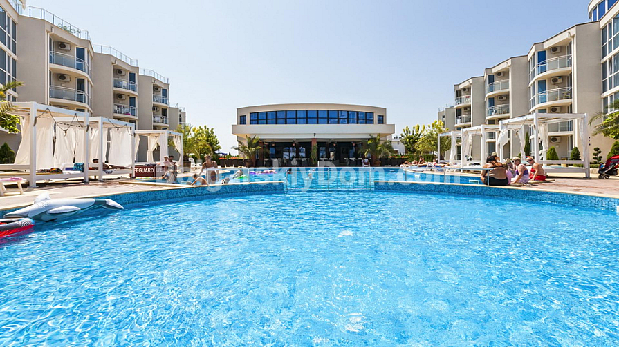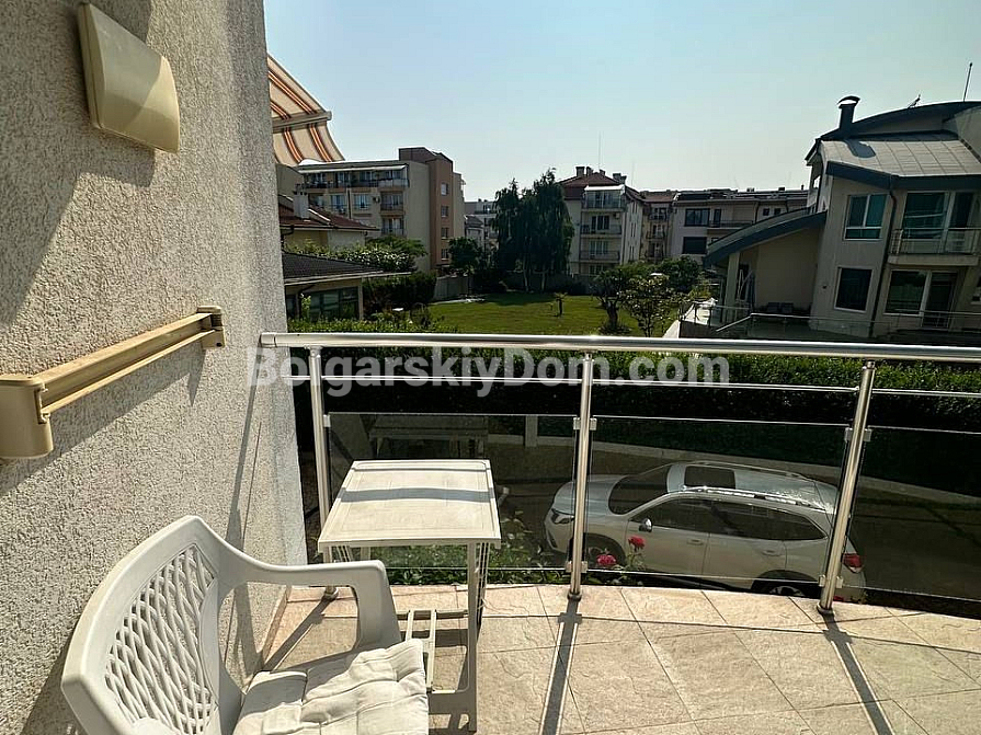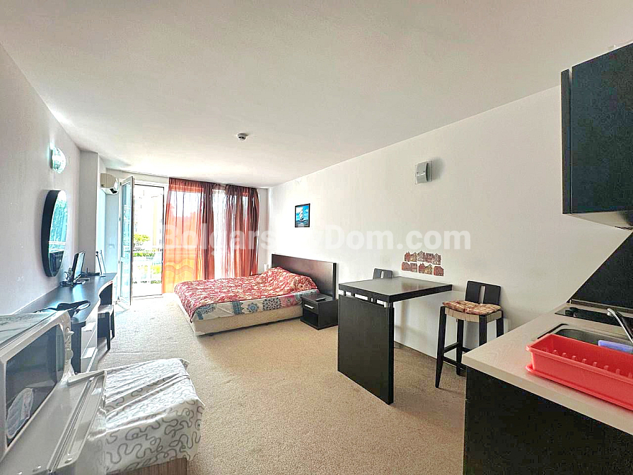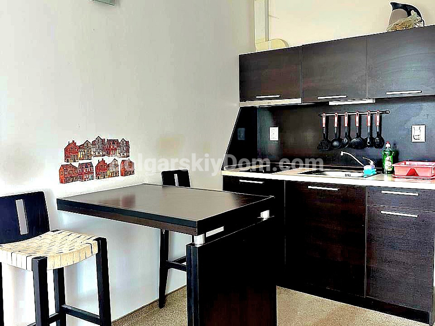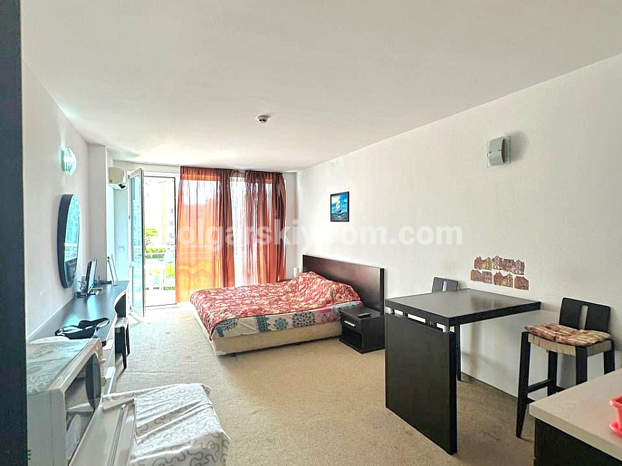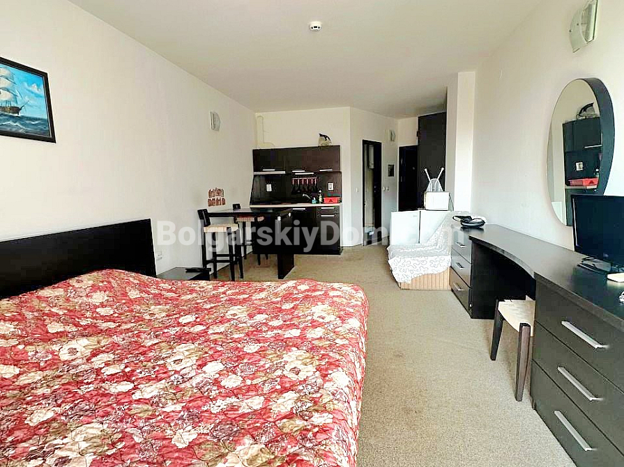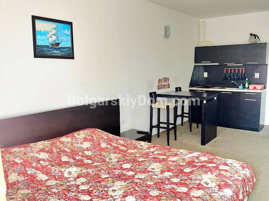 Квартира розташована в районі Сарафово, м. Бургас, у другій лінії від моря, у великому житловому комплексі «Атлантіс». Студія загальною площею 43 кв.м включає: передпокій, житлове приміщення з кухонною та обідньою зонами, куточок для відпочинку, ванну кімнату з душовою кабіною та просторий балкон. Житло знаходиться на 2-му поверсі будинку, обладнаного ліфтом. Продається з меблями та побутовою технікою.