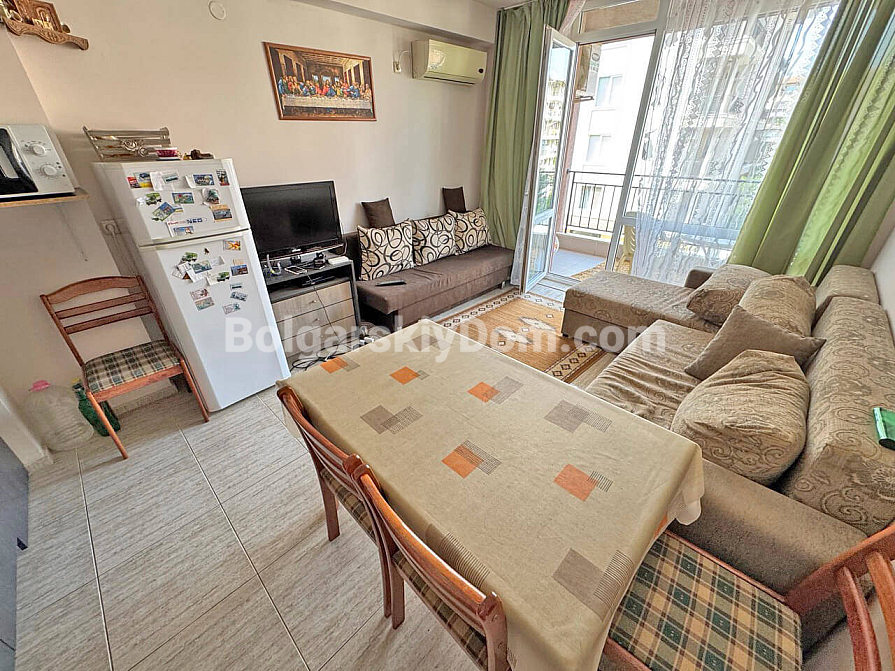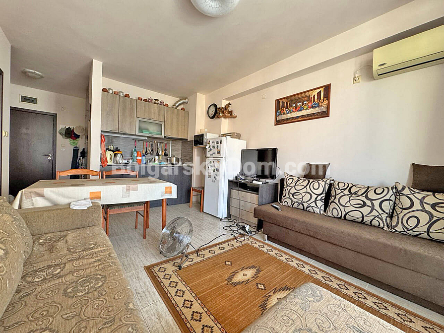 Житловий комплекс Свята Софія, у якому розташовані апартаменти, знаходиться у спокійній частині Сонячного Берега, лише за 450 метрів від моря. Територія комплексу закрита й доглянута, забезпечує високий рівень приватності та безпеки. До ваших послуг відкритий басейн, автостоянка та ліфт. Завдяки своєму розташуванню, комплекс має легкий доступ до всієї необхідної інфраструктури для комфортного життя, залишаючись при цьому у тихій та мальовничій місцевості. Невелика річна такса утримання у розмірі 8 євро за кв.м робить цю пропозицію ще привабливішою як для інвестицій, так і для особистого користування.