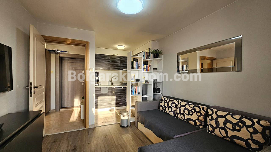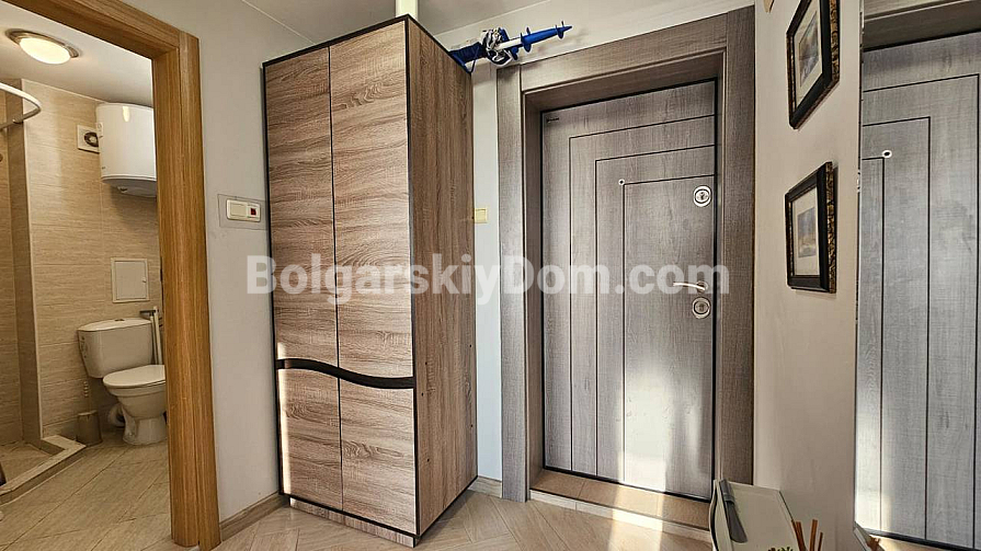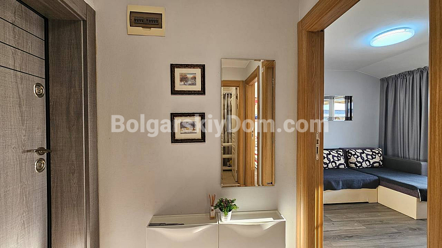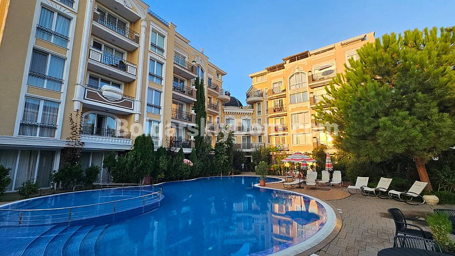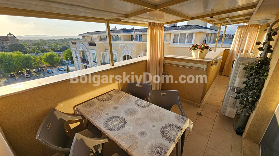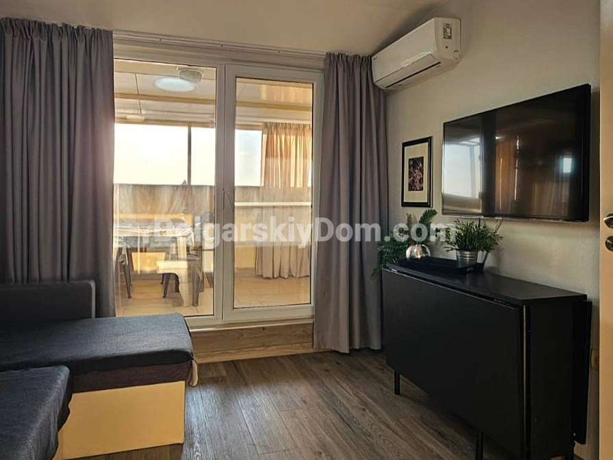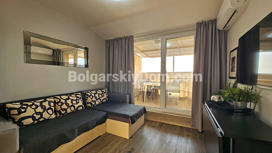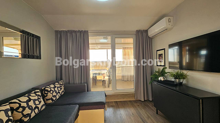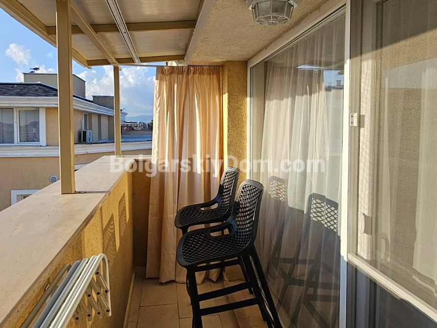 Тим, хто шукає комфорт та повністю облаштоване житло, ми пропонуємо новинку – двокімнатну квартиру в комплексі Мессембрія Палас, розташованому в зручному районі Сонячного берега. Її площа становить 48,5 кв.м., квартира знаходиться на шостому поверсі, звідки відкривається вид на комплекс та заходи сонця. Всередині є дві окремі кімнати, що створює приватний і зручний простір. Квартира повністю мебльована та укомплектована технікою, інтер’єр у нейтральних тонах перебуває у відмінному технічному та візуальному стані.