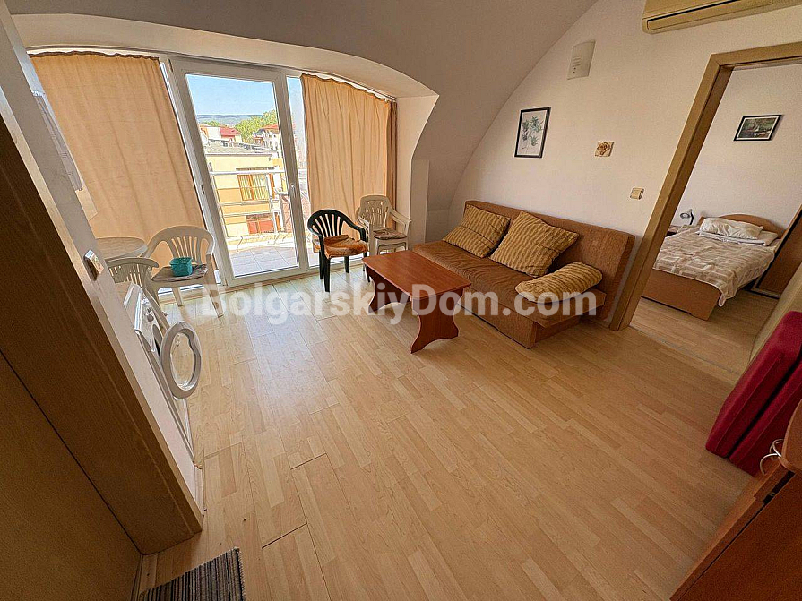 Поповнення каталогу об’єктів вторинного ринку! Пропонуємо на продаж двокімнатну квартиру в комплексі Стелла Поларіс 1, що розташований у тихій південній частині Сонячного Берега. Площа квартири 48 кв.м., вона знаходиться на шостому поверсі, звідки відкривається чудовий краєвид на околиці та двір. Планування дуже зручне, незважаючи на невелику площу: є вітальня, окрема спальня, санвузол та затишна тераса. Житло повністю мебльоване та готове до заселення, а наявність Акту 16 підтверджує, що будинок введено в експлуатацію та готовий до проживання.