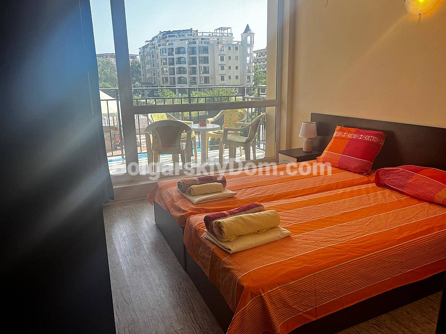 Чудова новинка за доступною ціною вже в каталозі АН Болгарський Дім! Якщо ви шукаєте апартамент для своєї родини, зверніть увагу на цю трьохкімнатну квартиру в комплексі Сансет Біч 3. Площа 92 кв.м. дозволяє зручно розміститися всім. Квартира знаходиться на другому поверсі, її зручне планування включає вітальню з інтегрованою кухонною зоною, дві окремі спальні, ванну кімнату та балкон із чудовим видом на басейн. Житло у відмінному стані та готове до заселення. Чекаємо на ваш дзвінок чи повідомлення!