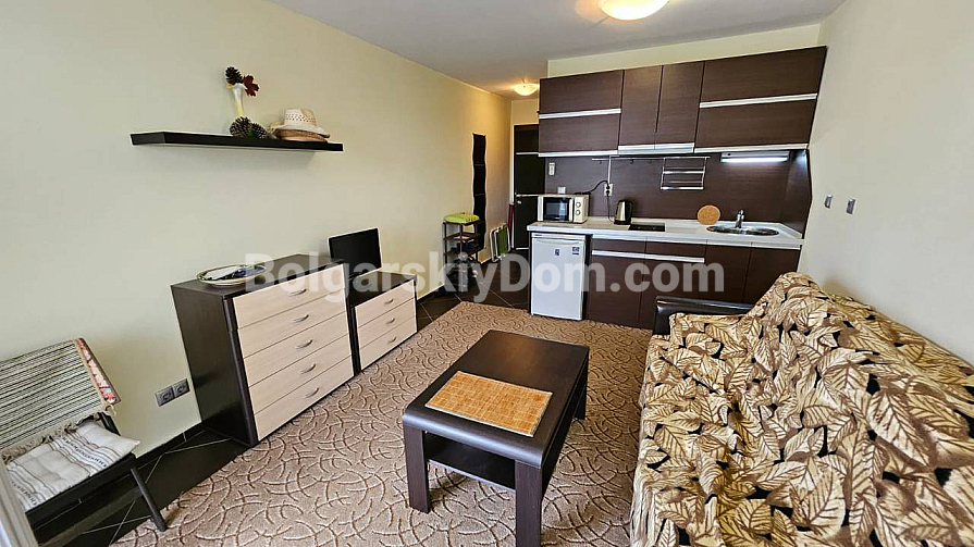 У нашому каталозі з’явилася простора студія в комплексі Одиссей у Несебрі. Її площа становить 41 кв.м., вона розташована на третьому поверсі, тобто всі параметри повністю відповідають інвестиційно привабливій та ліквідній нерухомості. Житло складається з вітальні з кухонним куточком, ванної кімнати з душем та тераси. Квартира повністю мебльована новими меблями та технікою, а це означає, що ви можете одразу заселитися та насолоджуватися життям біля моря. Сам комплекс збудований за високими європейськими стандартами, включаючи шумо- та гідроізоляцію.