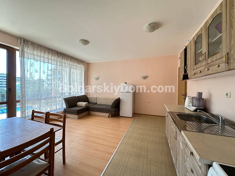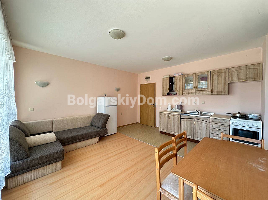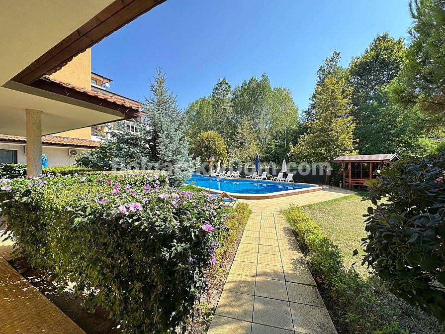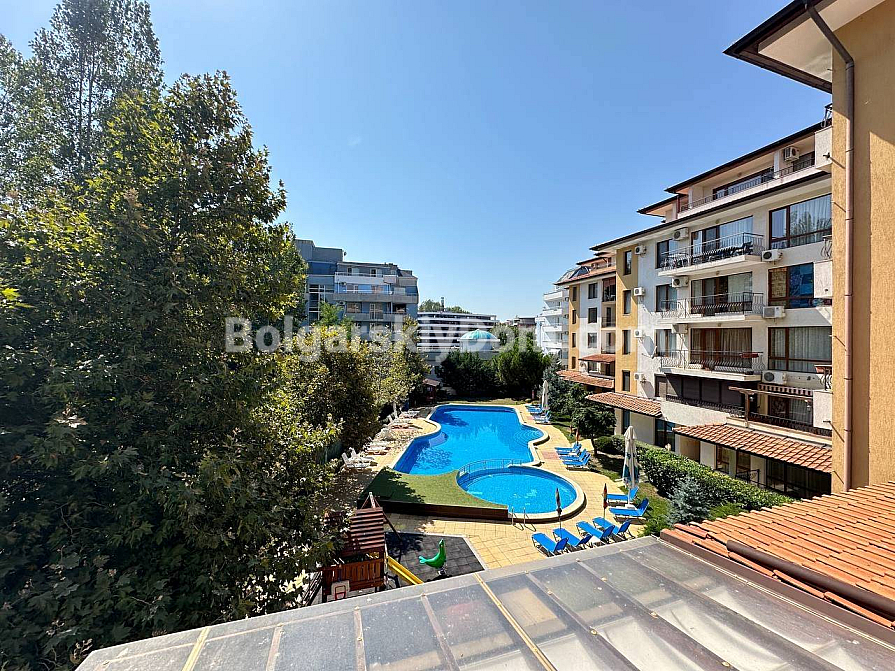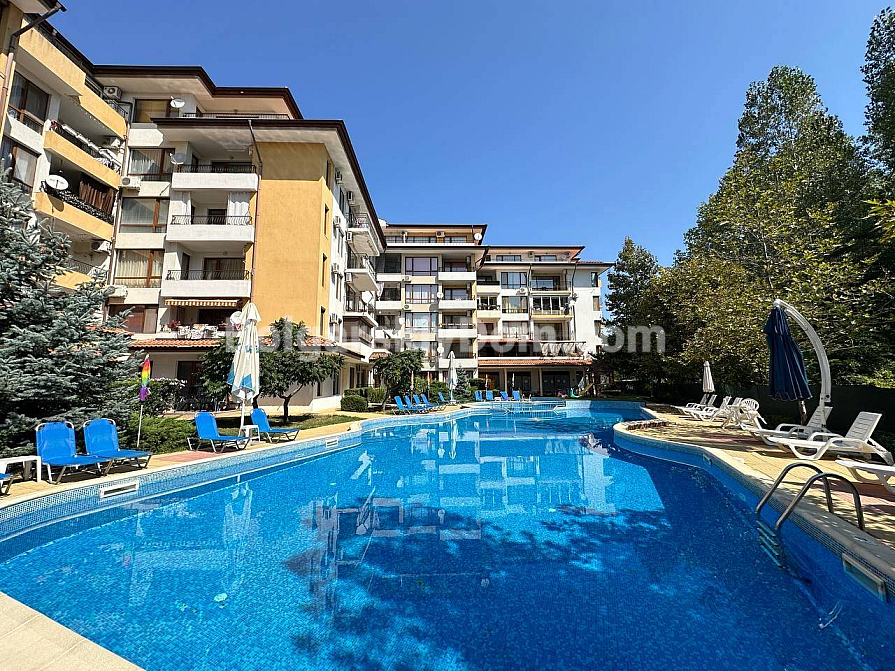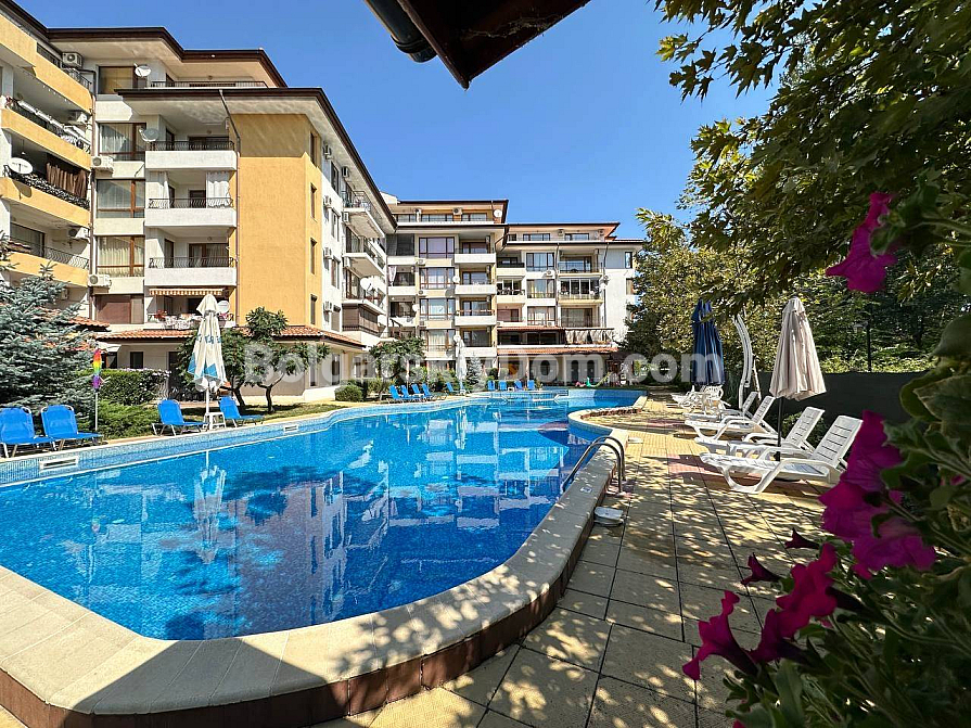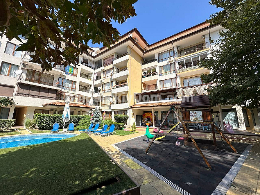 Комплекс Diamond Bay розташований у тихій північно-західній частині Сонячного берега, всього за 450 метрів від широкого піщаного пляжу. Таке розташування забезпечує спокійну атмосферу поруч із необхідною для проживання чи відпочинку інфраструктурою. На території є великий басейн, окремий дитячий басейн, дитячий майданчик та зона відпочинку з шезлонгами. Річна такса на утримання становить лише 7 євро за квадратний метр.