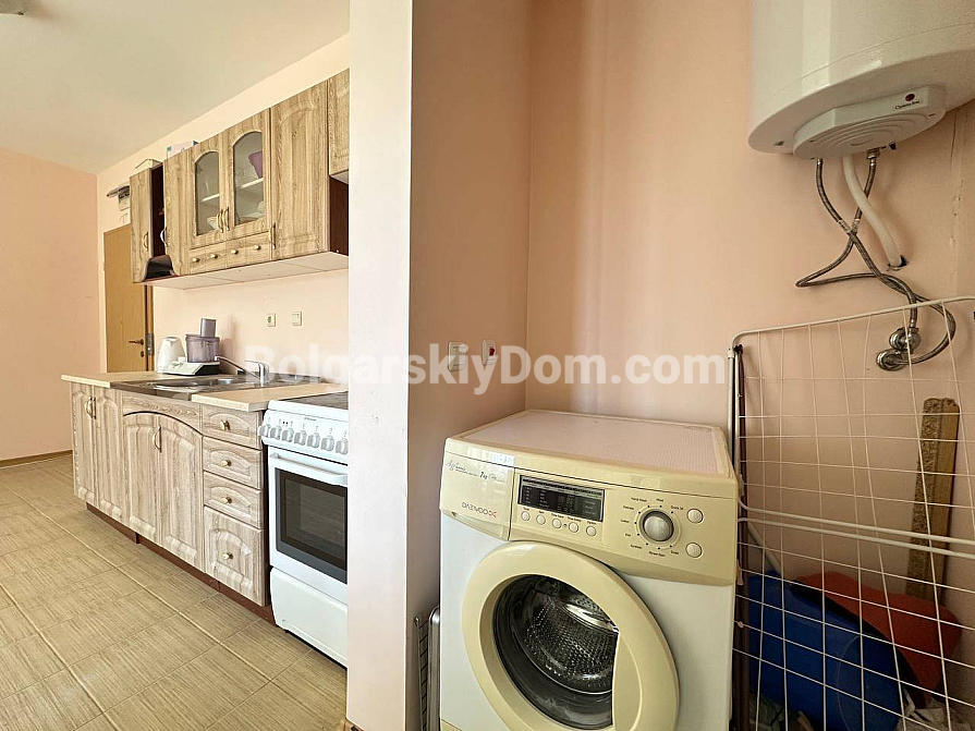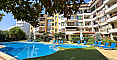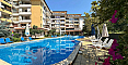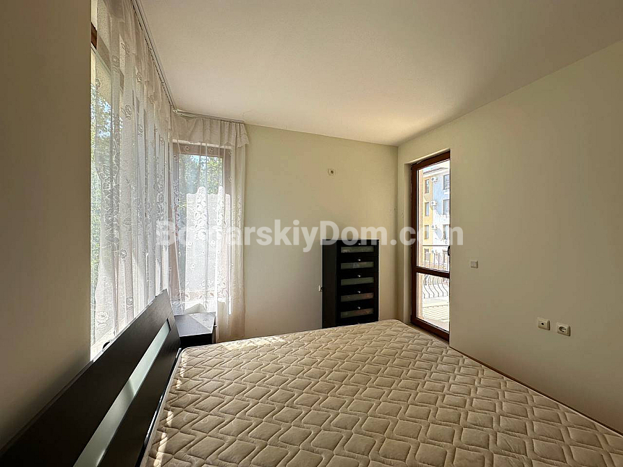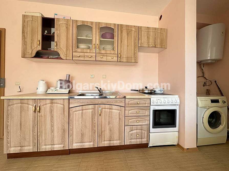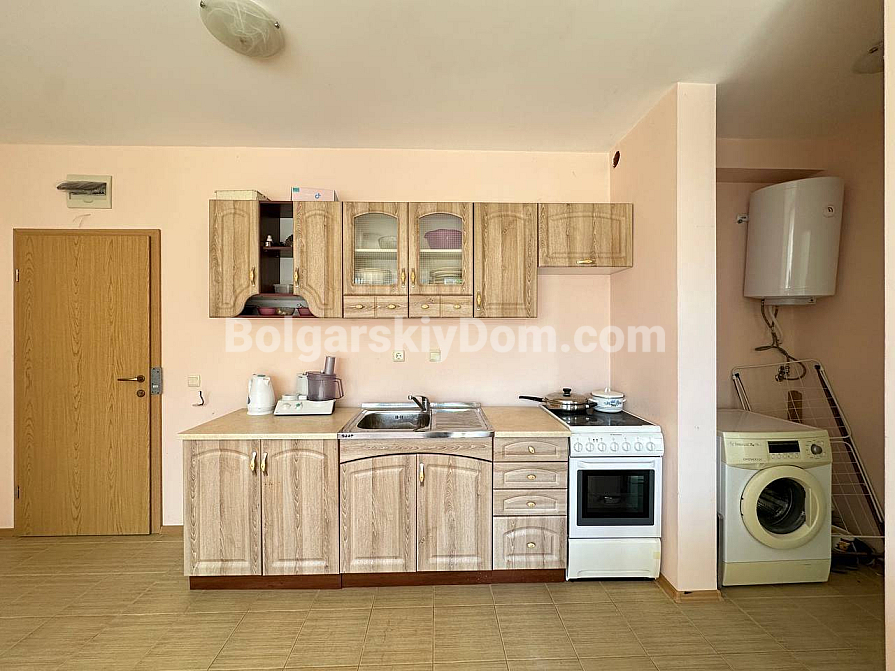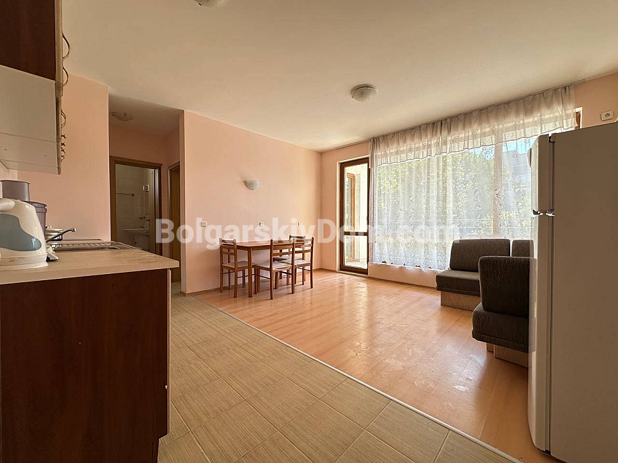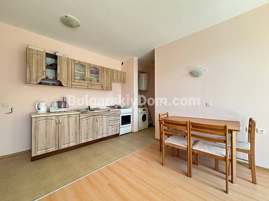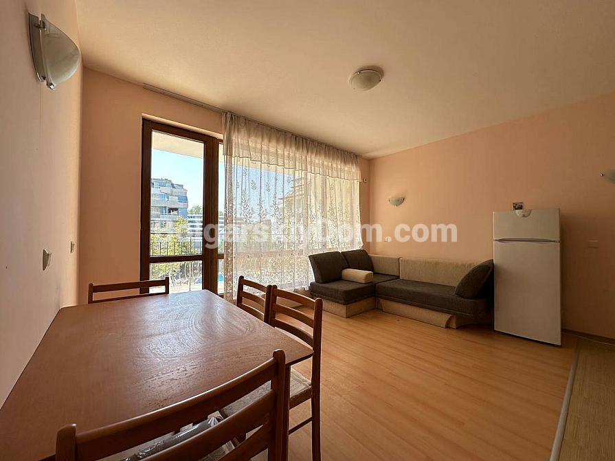 Комплекс Diamond Bay розташований у тихій північно-західній частині Сонячного берега, всього за 450 метрів від широкого піщаного пляжу. Таке розташування забезпечує спокійну атмосферу поруч із необхідною для проживання чи відпочинку інфраструктурою. На території є великий басейн, окремий дитячий басейн, дитячий майданчик та зона відпочинку з шезлонгами. Річна такса на утримання становить лише 7 євро за квадратний метр.