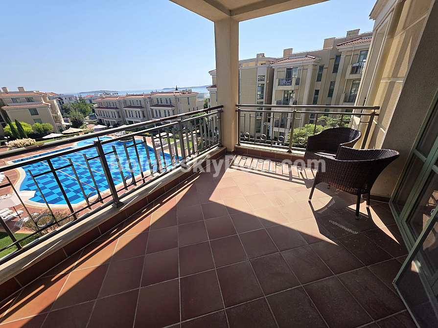 Нерухомість з видом на море у найбільш зручному для сім’ї форматі! У нашому каталозі з’явилася простора квартира, яка має особливу цінність: неймовірне відчуття свободи та комфорту. Її площа становить 126 кв.м., що для житла з двома спальнями є справжньою рідкістю. Апартамент розташований на третьому поверсі в комплексі Flores Garden і має продумане планування: простора вітальня з кухонною зоною, дві спальні, два санвузли та балкон. Інтер’єр світлий, у приємних пастельних тонах, тераса велика та затінена, додатково є комора. Ергономічний та зручний простір для життя.