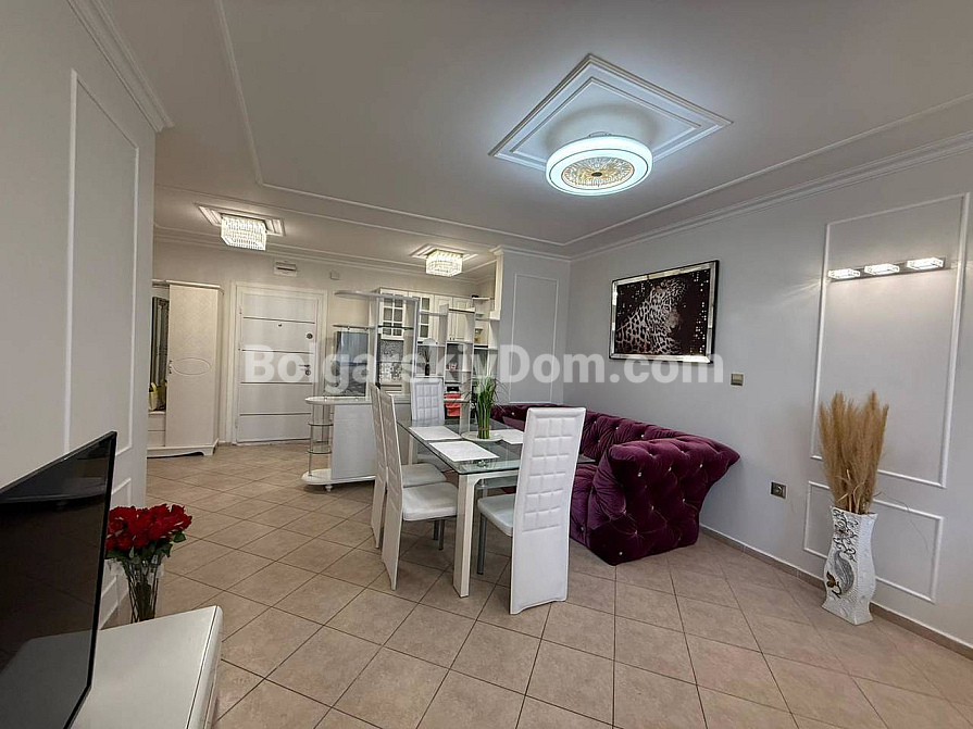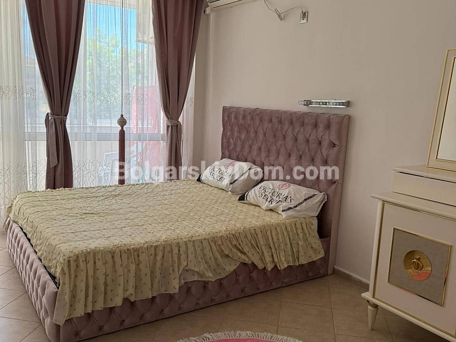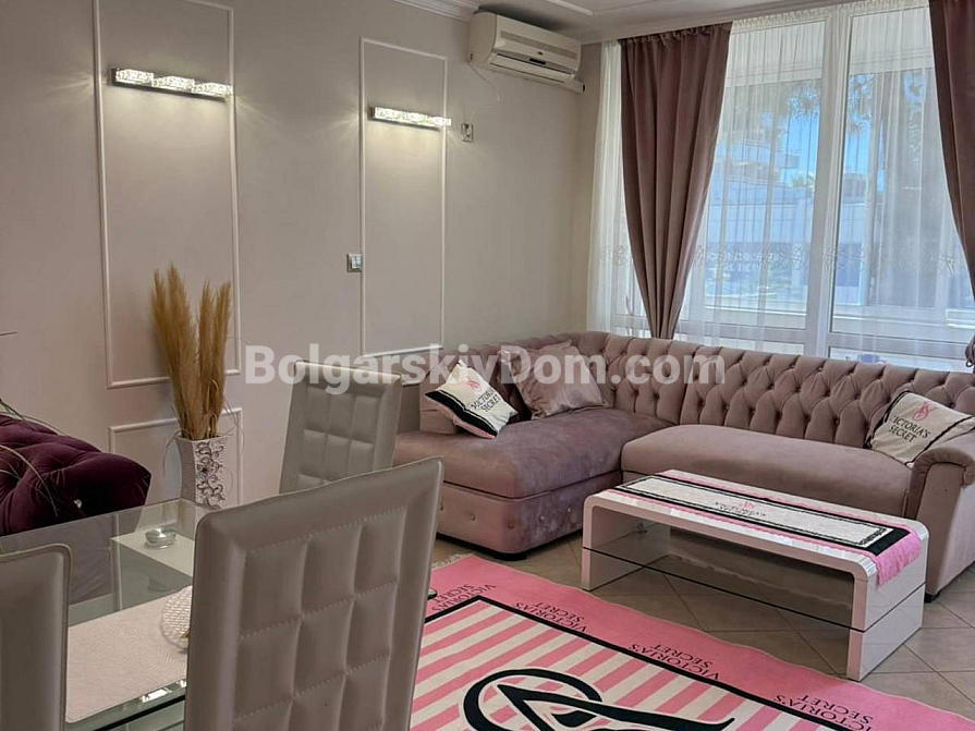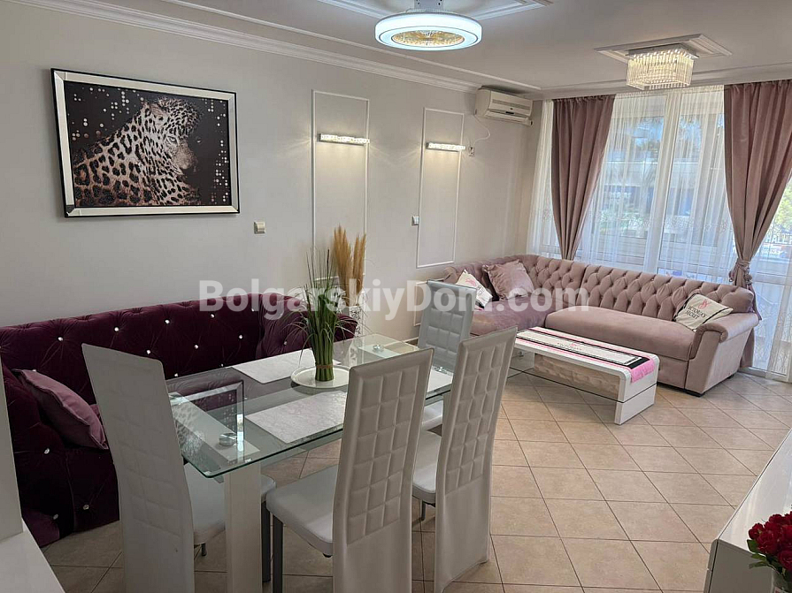 У самому серці Сонячного берега з’явилася неймовірна пропозиція, яка поєднує в собі зручність і розкіш. Ця двокімнатна квартира в комплексі Sun Palace має площу 74 кв.м. і розташована на третьому поверсі, куди вас доставить швидкісний ліфт. Квартира продається з розкішними меблями, оснащена технікою, різними інтер’єрними деталями та повністю готова до заселення. Вона має три виходи: до басейну, на паркінг і до пішохідної зони, що є величезною перевагою. Додатковий комфорт забезпечують приватний паркінг і комора прямо на поверсі. Розташування в центрі курорту робить цю квартиру чудовим варіантом як для відпочинку, так і для постійного проживання. Тераса засклена розсувними панелями, що дозволяє використовувати її будь-якої пори року.