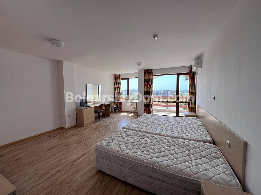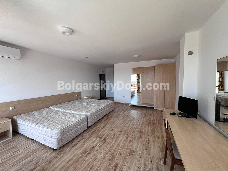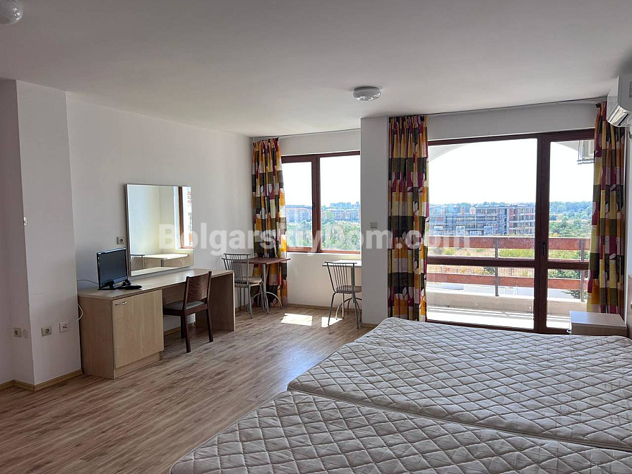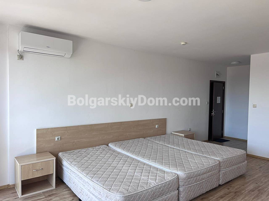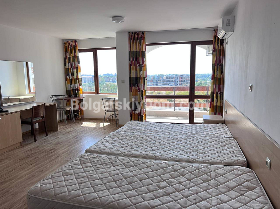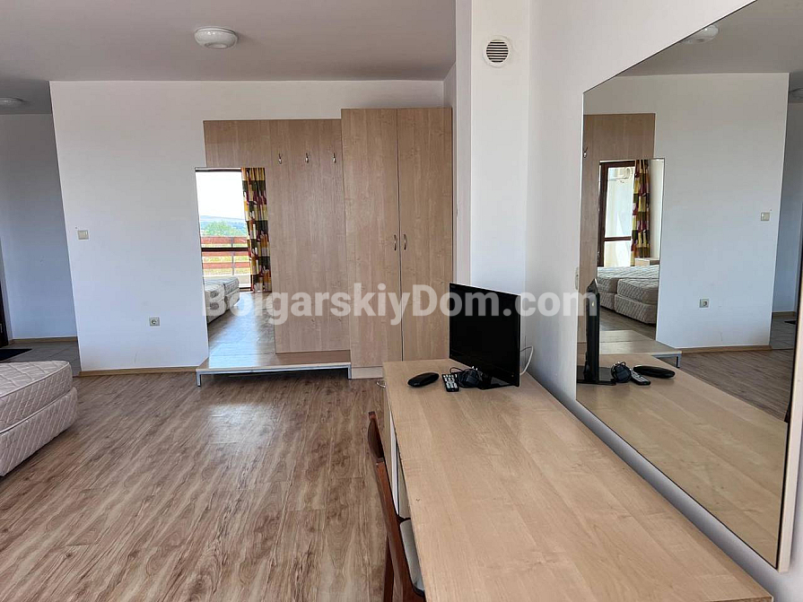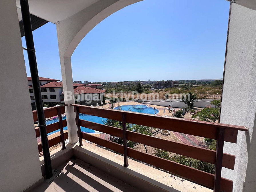 Наша команда Болгарського Дому рада представити вам простору мебльовану квартиру в цілорічному комплексі Gardenia Hills. Це затишне житло площею 60 кв.м. розташоване на третьому поверсі, звідки відкривається вид на басейн. Планування включає передпокій, простору вітальню зі спальнею зоною, ванну кімнату з душем і туалетом, а також велику терасу з лаунж-зоною, яка стане вашим улюбленим місцем для відпочинку. Квартира повністю мебльована і готова до заселення. Планування дозволяє оформити зонування на ваш смак. Дзвоніть!