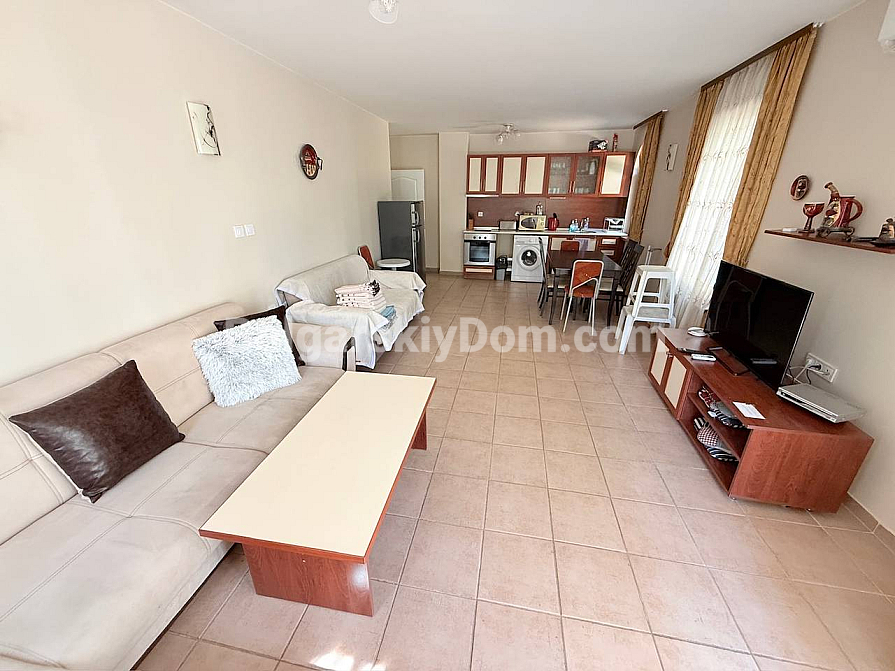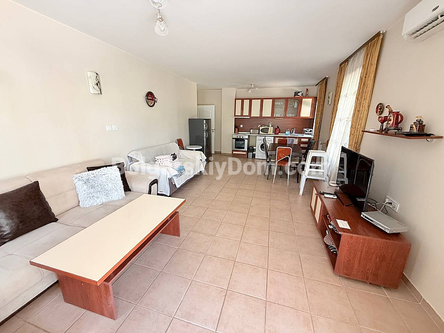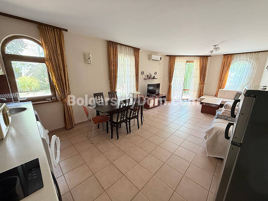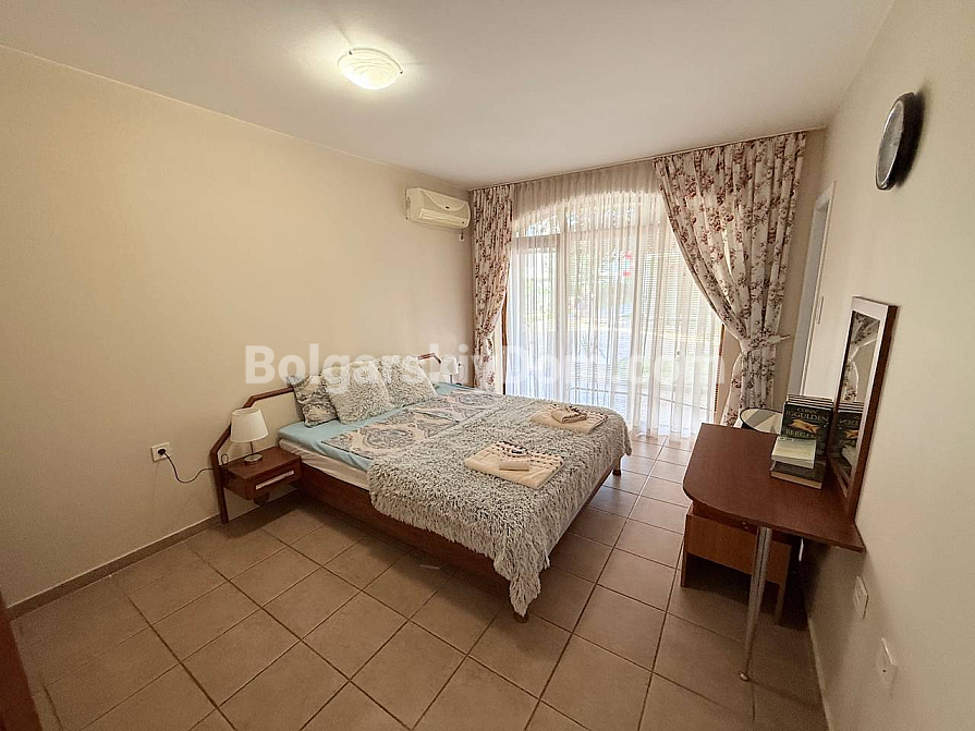 На продаж пропонується затишний і просторий апартамент з двома спальнями в сучасному комплексі Сонячного берега. Розташований на партері - ідеально підійде для сім'ї з дітками. Житло повністю мебльовано і підготовлено для комфортного відпочинку і проживання: має великий передпокій, простору вітальню з кухонною зоною і куточком для відпочинку, дві окремі спальні, два зручних санвузли (один - з душкабіною, другий - з ванною) і терасу, де приємно проводити час на свіжому повітрі. Апартамент дуже світлий - з великою кількістю вікон і з приємною атмосферою. Відмінний варіант як для вигідної здачі в оренду в сезон, так і для цілорічного проживання біля моря.