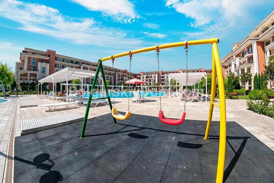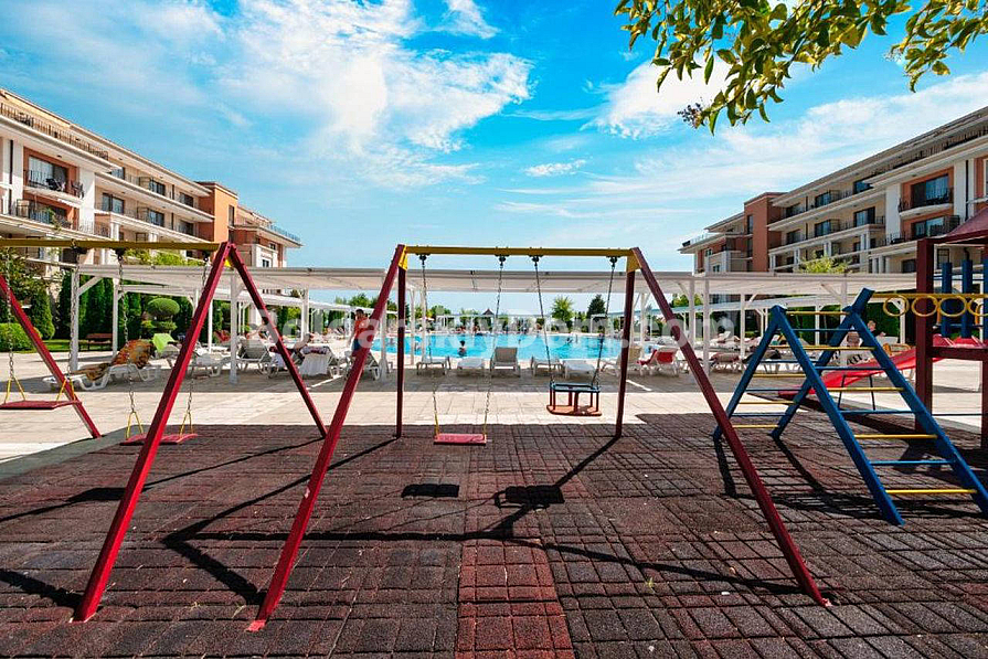 Студія розташована на першому поверсі в елітному комплексі Престиж Форт Біч — одному з кращих на узбережжі. Комплекс знаходиться на першій лінії моря, буквально в декількох кроках від пляжу. Закрита територія потопає в зелені, створюючи атмосферу розкоші і приватності. Тут є: великий басейн для дорослих і дітей, ресторани і кафе, фітнес-зал, дитячий та спортивний майданчики, парковка, цілодобова охорона і відеоспостереження. Престиж Форт Біч славиться своєю тишею, чистотою і високим рівнем сервісу — це справжній оазис комфорту і безпеки для життя і відпочинку.