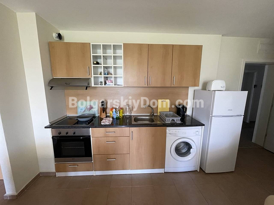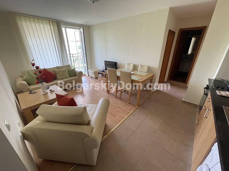 Топ-об’єкт у продажу від Болгарський Дім! У комплексі Holiday Fort з’явилася простора двокімнатна квартира, яка поєднує в собі ідеальний баланс затишку та функціональності. Загальна площа апартаменту становить 68,41 кв.м., він розташований на третьому поверсі та має чудовий вид на гори з великої тераси. Квартира з якісним ремонтом, повністю мебльована та обладнана всім необхідним: є м’які меблі, міні-кухня з витяжкою, духовкою, холодильником, пральною машиною, а також кондиціонер.