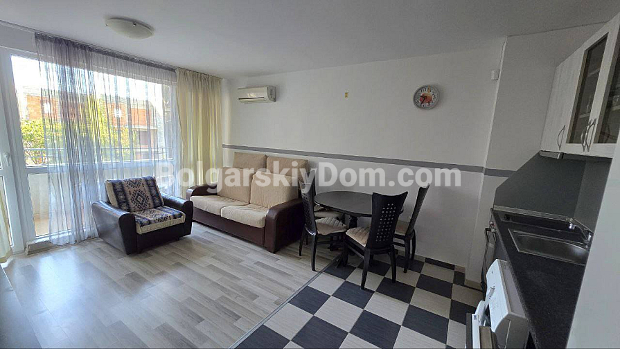 Комплекс Butterfly, у якому розташований апартамент, знаходиться всього за 500 метрів від моря та 250 метрів від супермаркету «Меркурій». Інфраструктура комплексу включає цілодобову охорону та обслуговування, відкритий басейн, сад, дитячий майданчик та, що особливо цінно, безкоштовний підземний паркінг для власників. Річна такса обслуговування становить лише 5 євро за квадратний метр – це в кілька разів нижче, ніж у подібних ЖК.