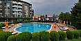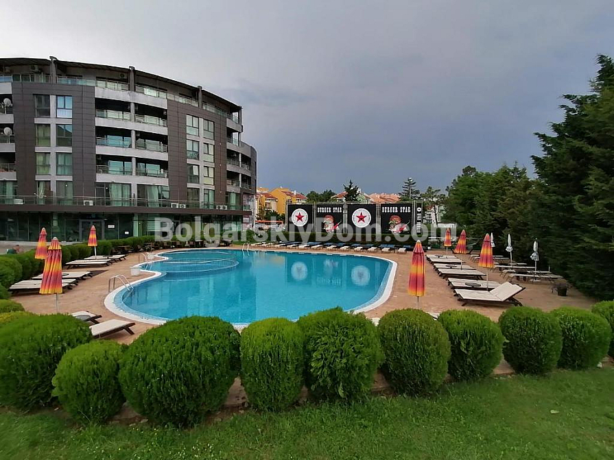 Житловий комплекс Санні Біч Плаза працює цілий рік і має Акт 16. Його розташування ідеальне для тих, хто цінує справді вигідну локацію: море знаходиться всього за 300 метрів, поруч розташовані магазини, кафе, ресторани, великий супермаркет і автобусна зупинка. Інфраструктура самого комплексу вражає: до послуг мешканців сезонний відкритий басейн, сад, тераса, бар, а також казино та дитячий майданчик. Вартість об’єкта є чудовою для цієї локації, а річна такса на утримання становить лише 10 євро за квадратний метр.