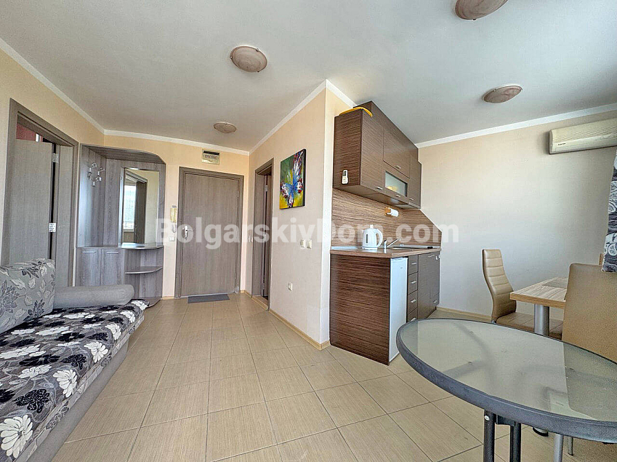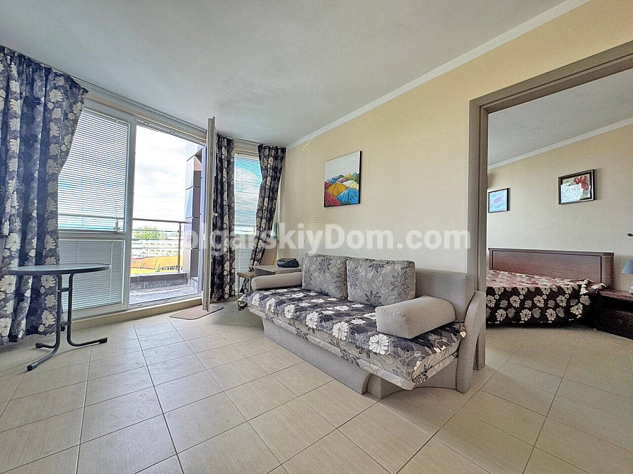 Компанія Болгарський Дім пропонує розглянути можливість придбання ліквідного житла в одному з найпопулярніших комплексів Сонячного Берега за привабливою ціною. У ЖК Санні Біч Плаза продається затишна двокімнатна квартира площею 58 кв.м., розташована на п’ятому поверсі. Функціональне планування включає їдальню з кухонною зоною, окрему спальню, ванну кімнату та балкон. З вікон відкривається вид на місто, басейн і мальовничі околиці. Квартира повністю готова до заселення та підходить для проживання протягом усього року.