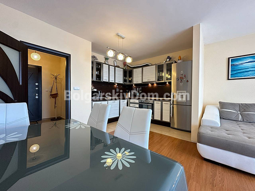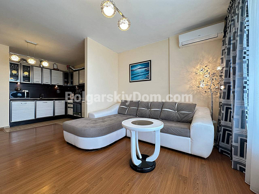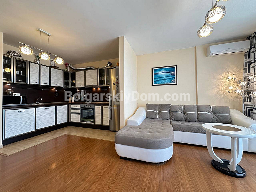 Квартира-мрія для тих, хто хоче обзавестися власним затишним гніздечком в тихому зеленому місці на узбережжі Чорного моря. Двокімнатний апартамент з приємним стильним інтер'єром: площа 74 кв.метра, комфортний четвертий поверх, всього 300 метрів до моря. Має дві просторі тераси з захоплюючим панорамним видом на море. Затишна спальня з великим двоспальним ліжком і шафою-купе. Простора вітальня з великою кухнею, обідньою зоною і зоною відпочинку. Все необхідне для комфортного життя від меблів до техніки тут є. Повністю готова до заселення з першого дня покупки.