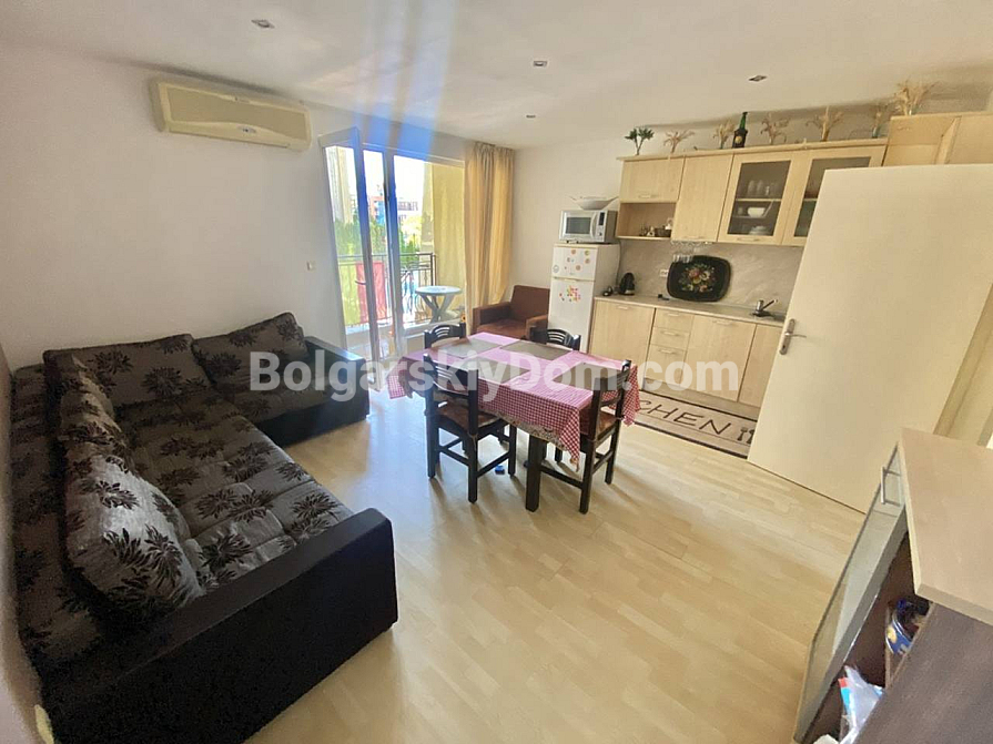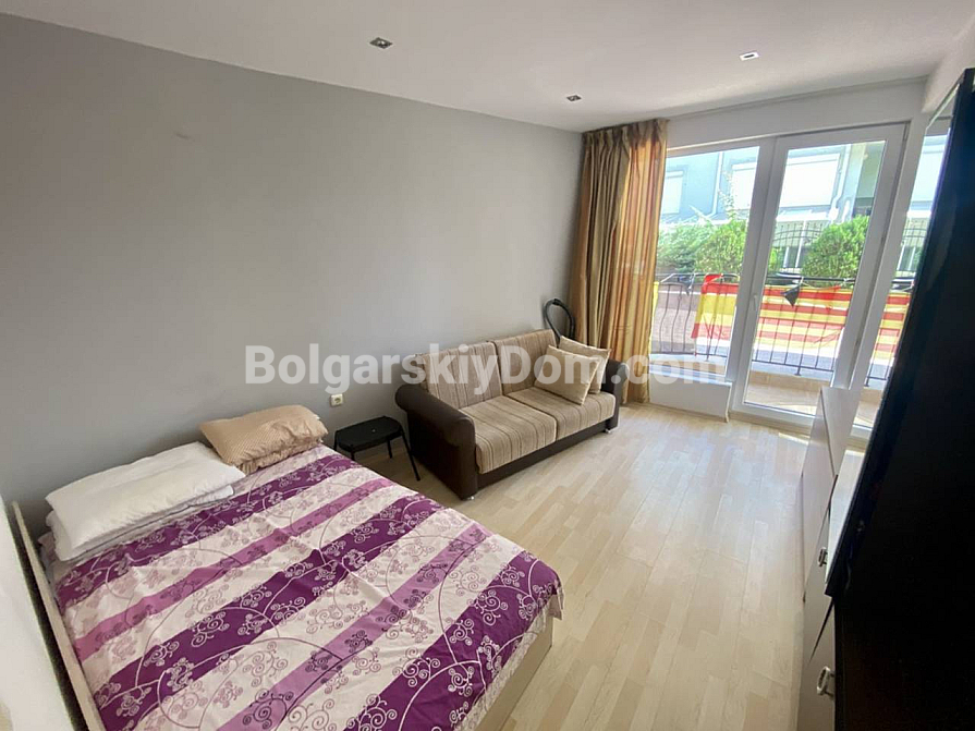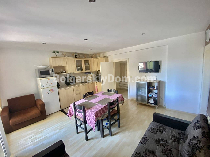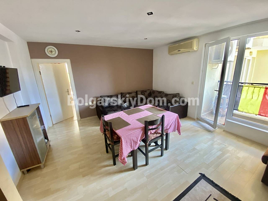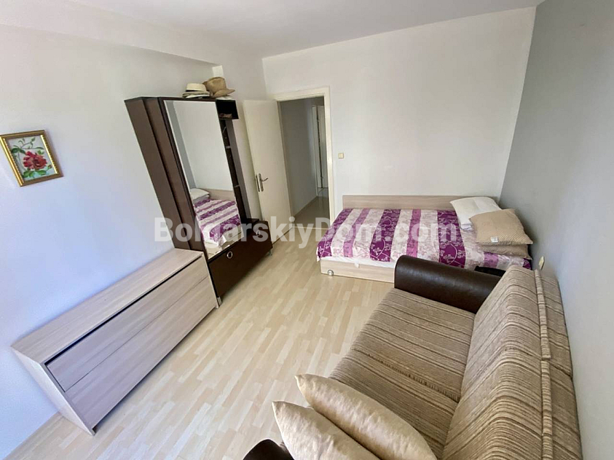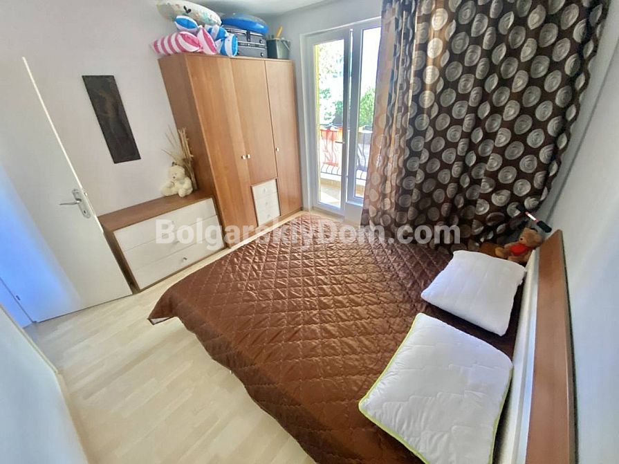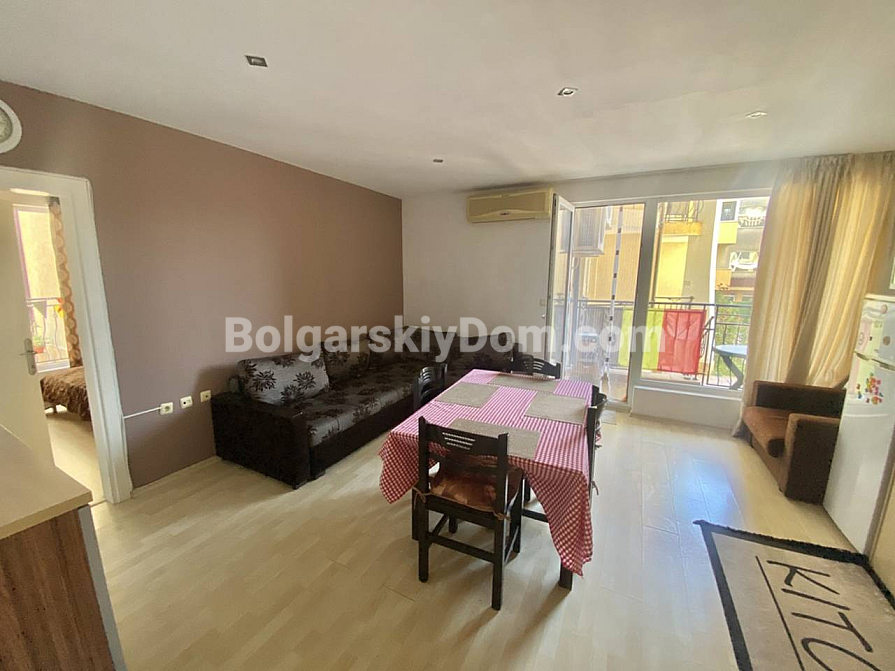 Зустрічайте – апартамент під ключ у чудовій локації! Bolgarskiy Dom запускає у продаж ідеальний варіант для тих, хто цінує комфорт, але не готовий переплачувати за великі комплекси! Пропонуємо затишну трикімнатну квартиру в невеликому ЖК Sunset – ідеальний вибір для сім’ї, розташований на другій лінії, всього за 150 метрів від моря. Головний бонус: квартира площею 76,5 кв.м. знаходиться на партерному поверсі, а це означає, що з обох терас у вас є прямий вихід до басейну! Апартамент повністю готовий до заселення: він складається з коридору, вітальні з кухонною зоною, двох спалень та санвузла з душовою кабіною. У вартість уже включені всі меблі та побутова техніка. Продумане планування забезпечує багато світла: вітальня виходить на південь, а спальні – на схід. З вікон відкривається приємний вигляд на внутрішній двір та басейн.