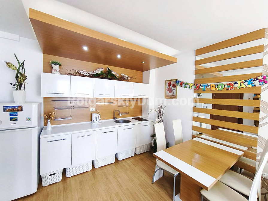 Новинка актуального каталогу! Компанія Болгарський Дім пропонує чудовий варіант для тих, хто шукає ідеальний баланс між комфортом, інфраструктурою та якістю! Продається двокімнатна квартира площею 63 кв.м. в головній фазі елітного житлового комплексу Світ Хоум — у самому центрі Сонячного Берега, у районі з взірцево розвиненою інфраструктурою. Апартамент розташований на 4-му поверсі будівлі з ліфтом і перебуває у відмінному стані. Планування включає передпокій, вітальню з кухонною зоною, окрему спальню, санвузол із душовою кабіною та балкон. Квартира продається з якісними меблями та побутовою технікою. Телефонуйте — організовуємо онлайн та офлайн перегляди!